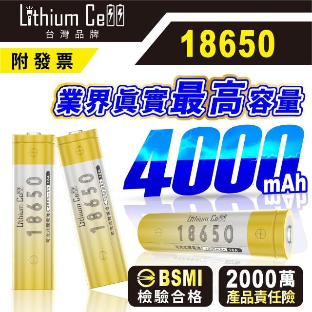 Lithium Cell台灣品牌 18650 鋰電池 4000mAh 平頭 凸點 充電電池 小風扇 手電筒電池 頭燈電池