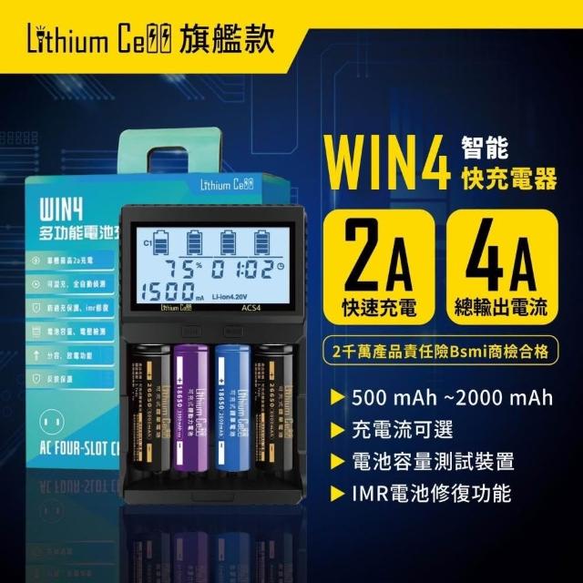 台灣品牌 Lithium Cell Win4 迅充多用充電器 四槽 可充鋰電池 26650 18650 21700 3號
