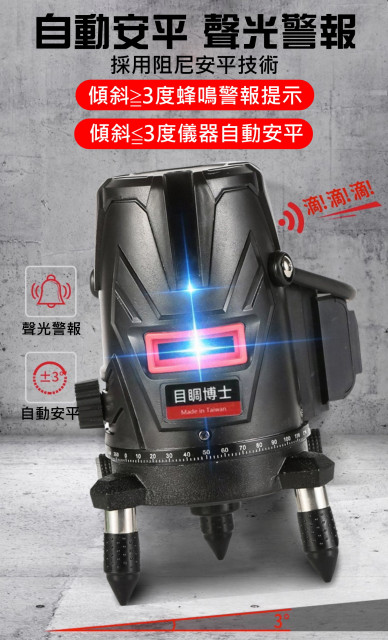 目睭博士 雷射水平儀 水平儀 觸控式 五線 藍光 歐司朗綠光 紅外線 室外裝修自動打斜線 自動安平