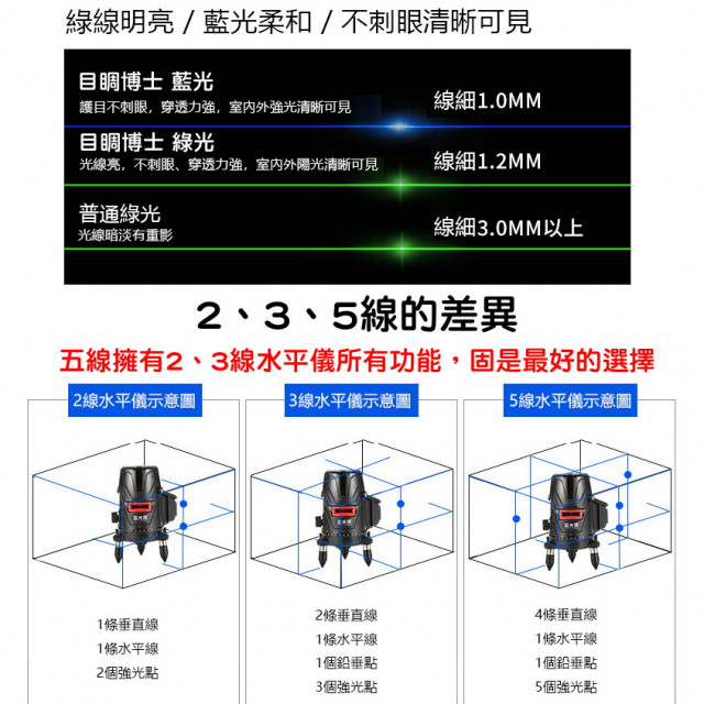 目睭博士 雷射水平儀 水平儀 觸控式 五線 藍光 歐司朗綠光 紅外線 室外裝修自動打斜線 自動安平