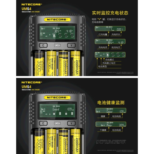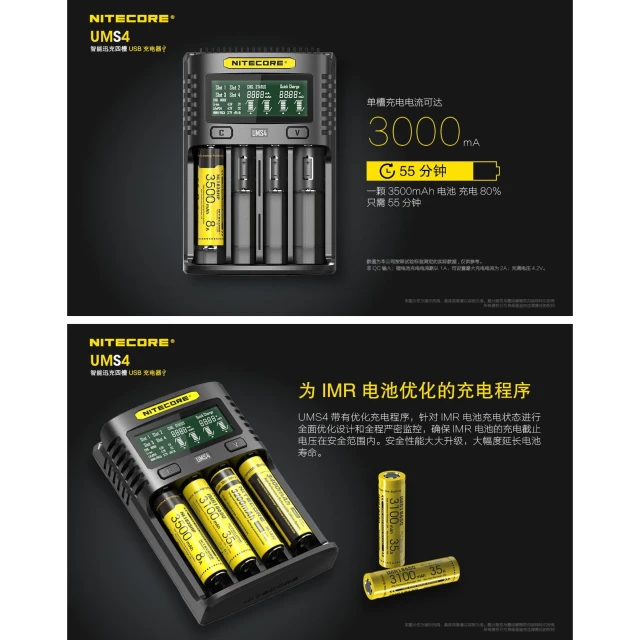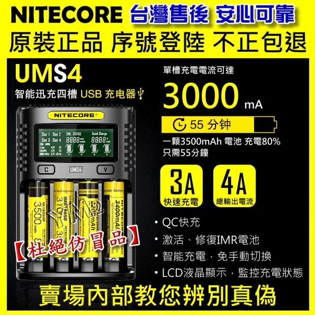 NITECOREUMS4 UMS2 智能USB充電器 奈特柯爾 4A 鋰電池 18650 D4 i2 SC4
