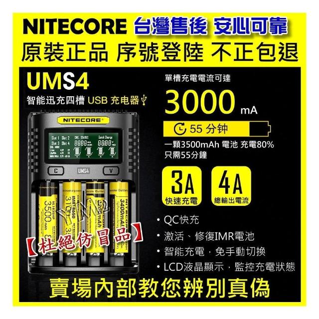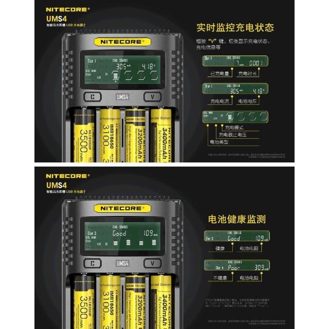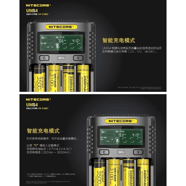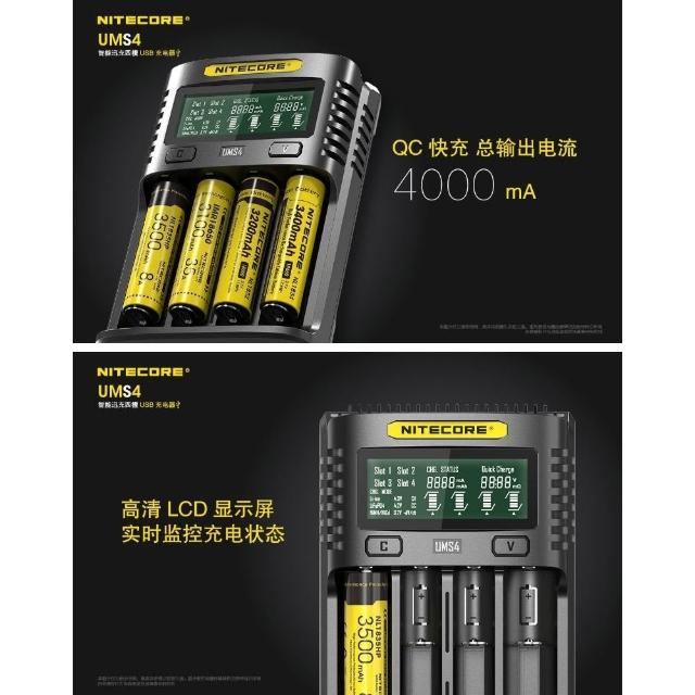NITECOREUMS4 UMS2 智能USB充電器 奈特柯爾 4A 鋰電池 18650 D4 i2 SC4