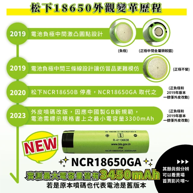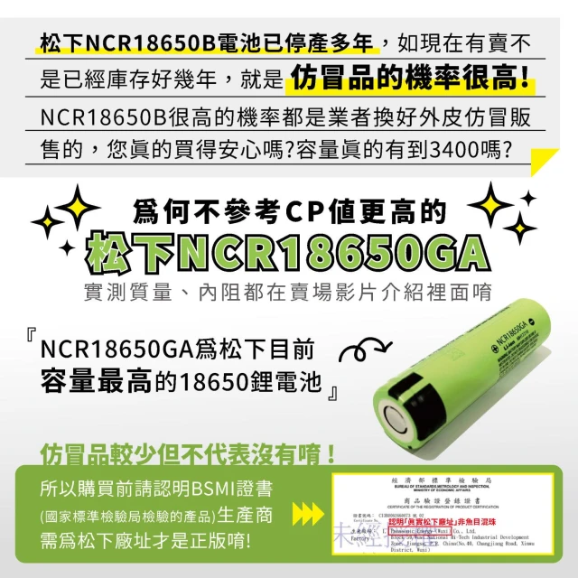 松下 日本製 18650 鋰電池 3450mAh NCR18650GA 風扇電池 頭燈電池 手電筒電池