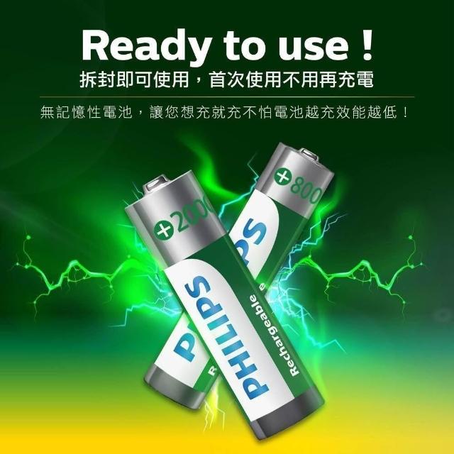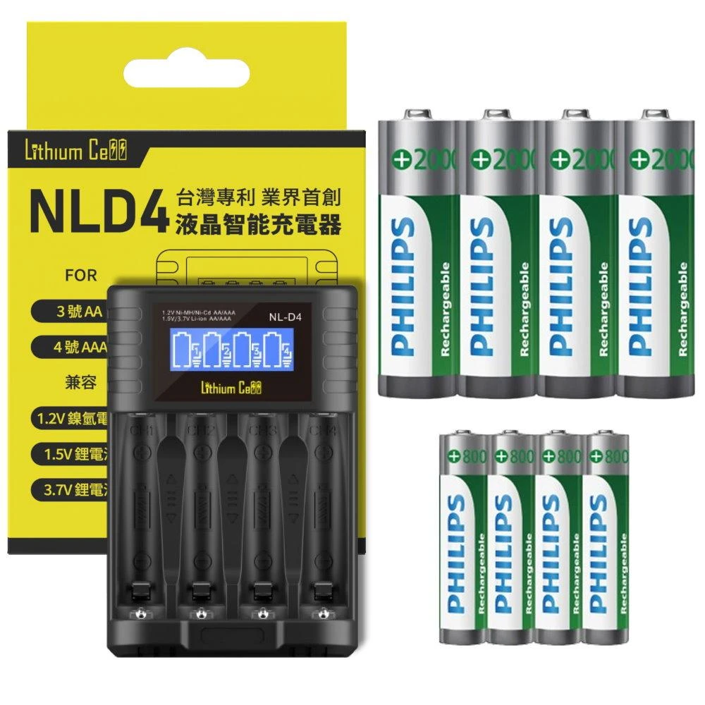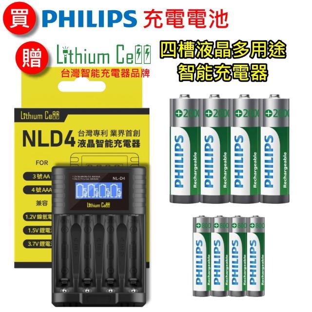 Philips 飛利浦鎳氫充電電池 3號4顆+ 4號4顆【贈4槽液晶智能充電器】 低自放 鎳氫電池 高容量 三號電池 AA電池 四號電池