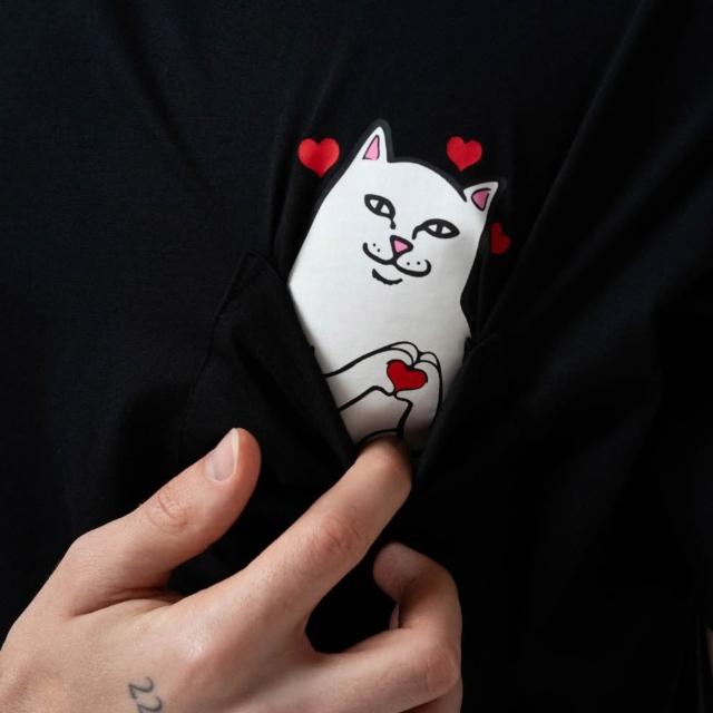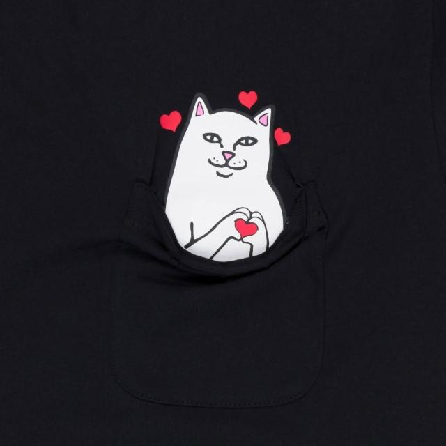RIPNDIP NERMAL LOVES POCKET TEE 中指貓 情人節限定 口袋貓 黑色 短袖T恤