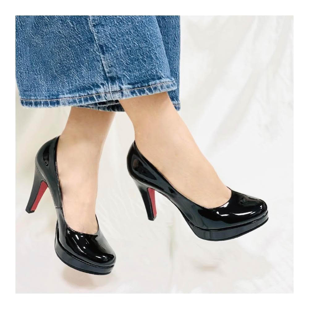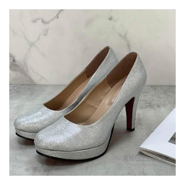 ANGLENELA 優雅圓頭漆皮高跟鞋 婚禮洋裝音樂會表演百搭款防水底台10cm高跟鞋閃亮銀號蔥鑽現貨35-40