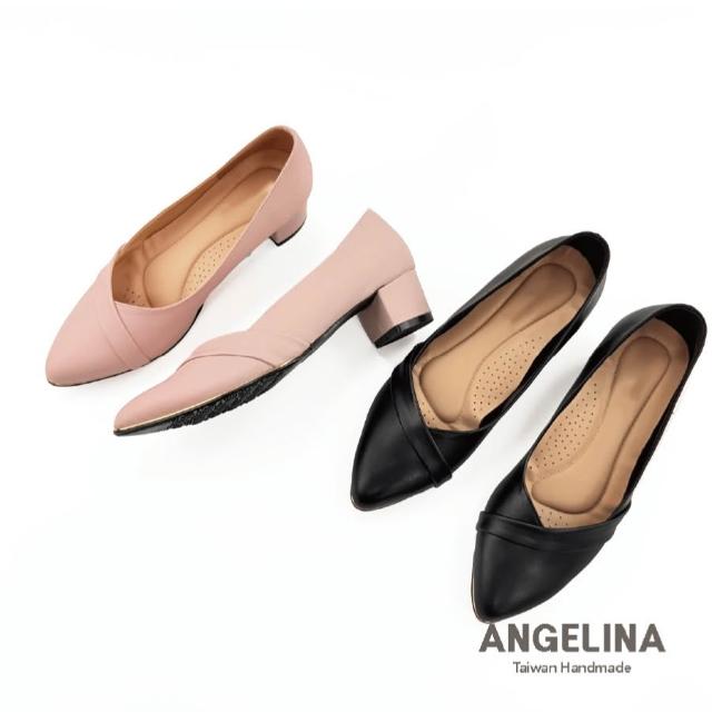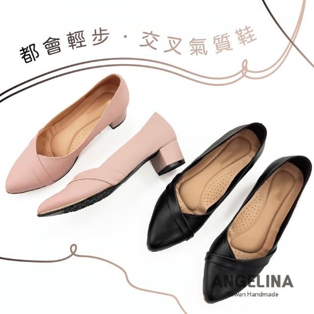 ANGLENELA 面試推薦 交叉設計氣質上班OL高跟鞋 粗跟 中低跟鞋