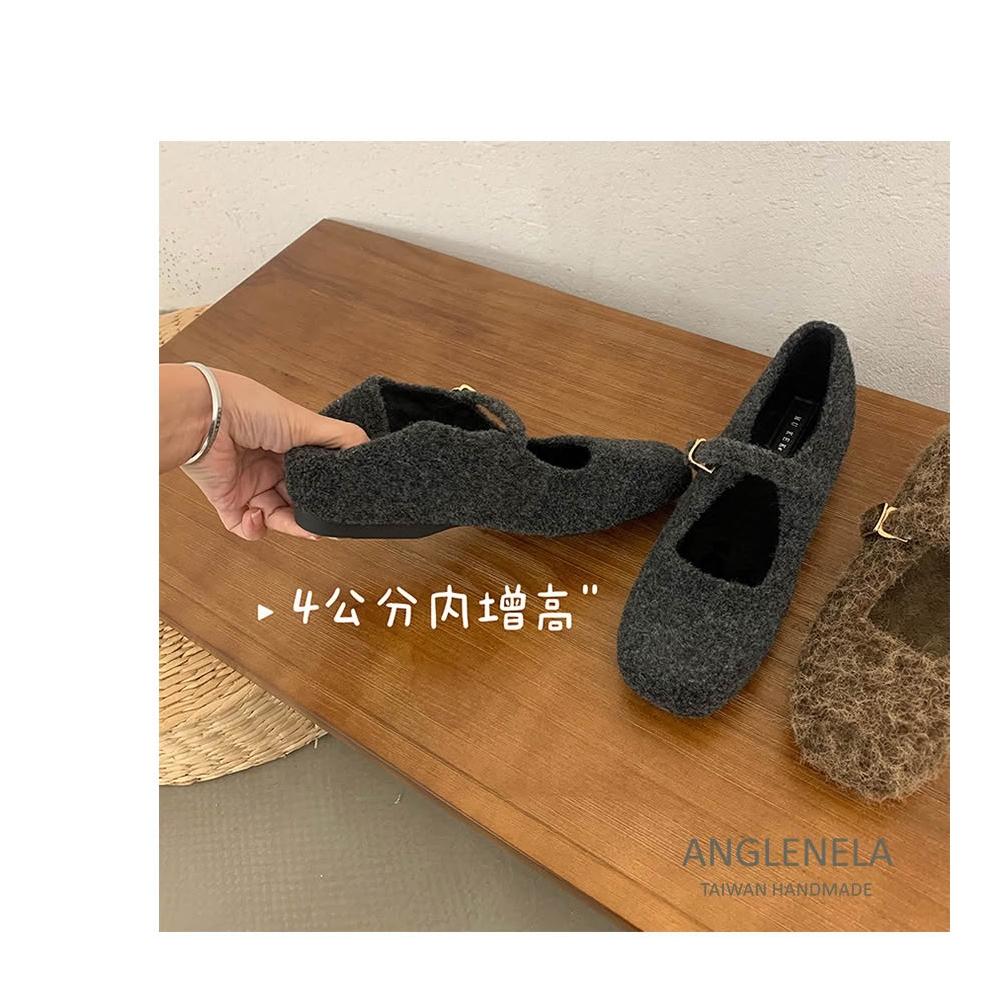 ANGLENELA 🩷小個子 内增高绒面瑪麗珍鞋秋冬新款一字帶羊羔毛毛鞋加絨娃娃鞋☃️❄️