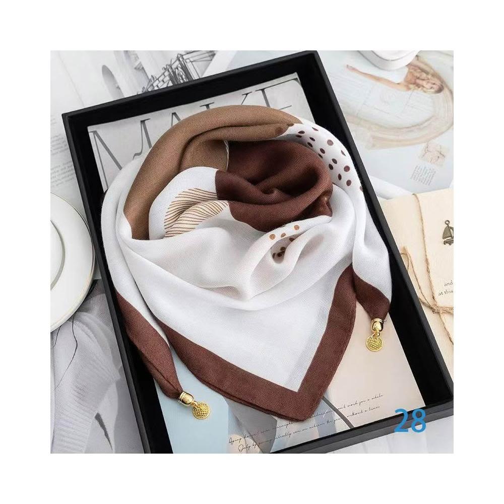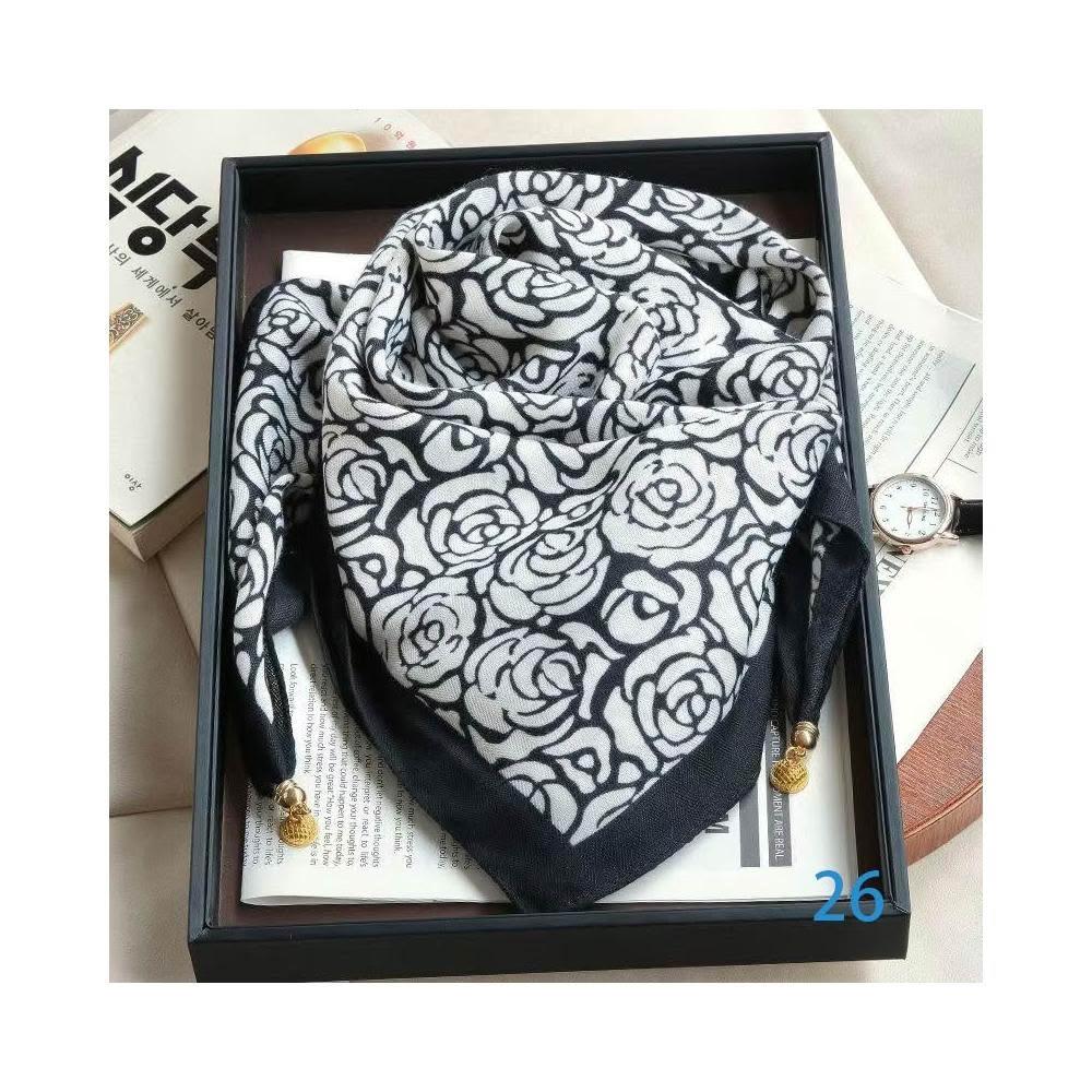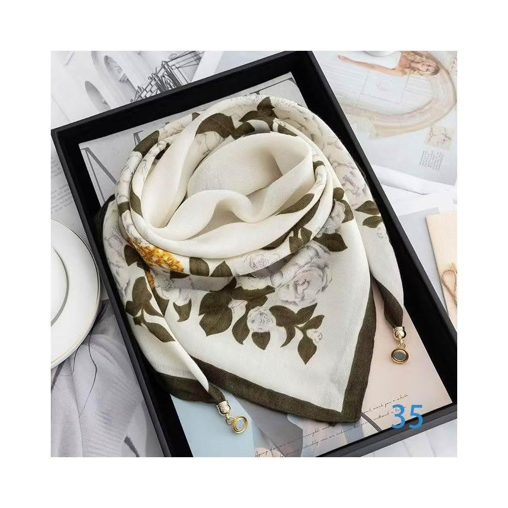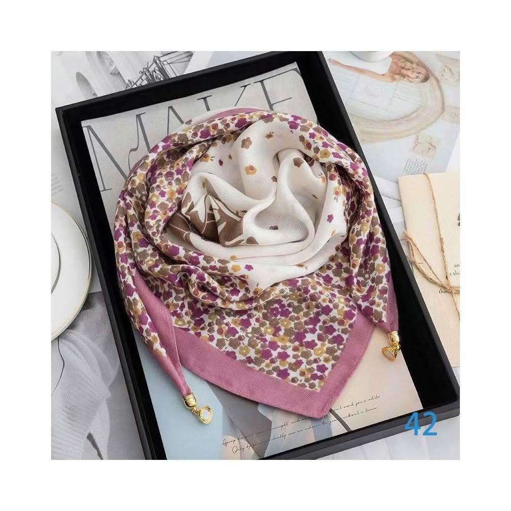 ANGLENELA 🔸新款保暖方巾 磁吸釦 三角絲巾 棉圍巾 脖圍巾 山茶花48種花色 二條即享優惠🔸25-48色