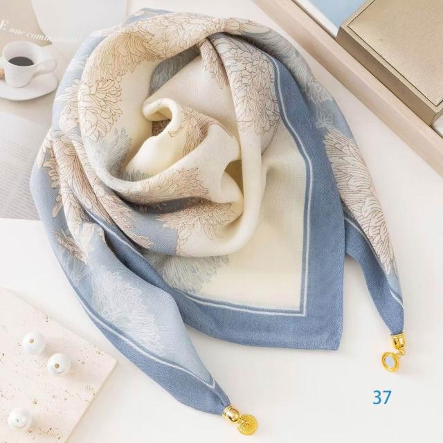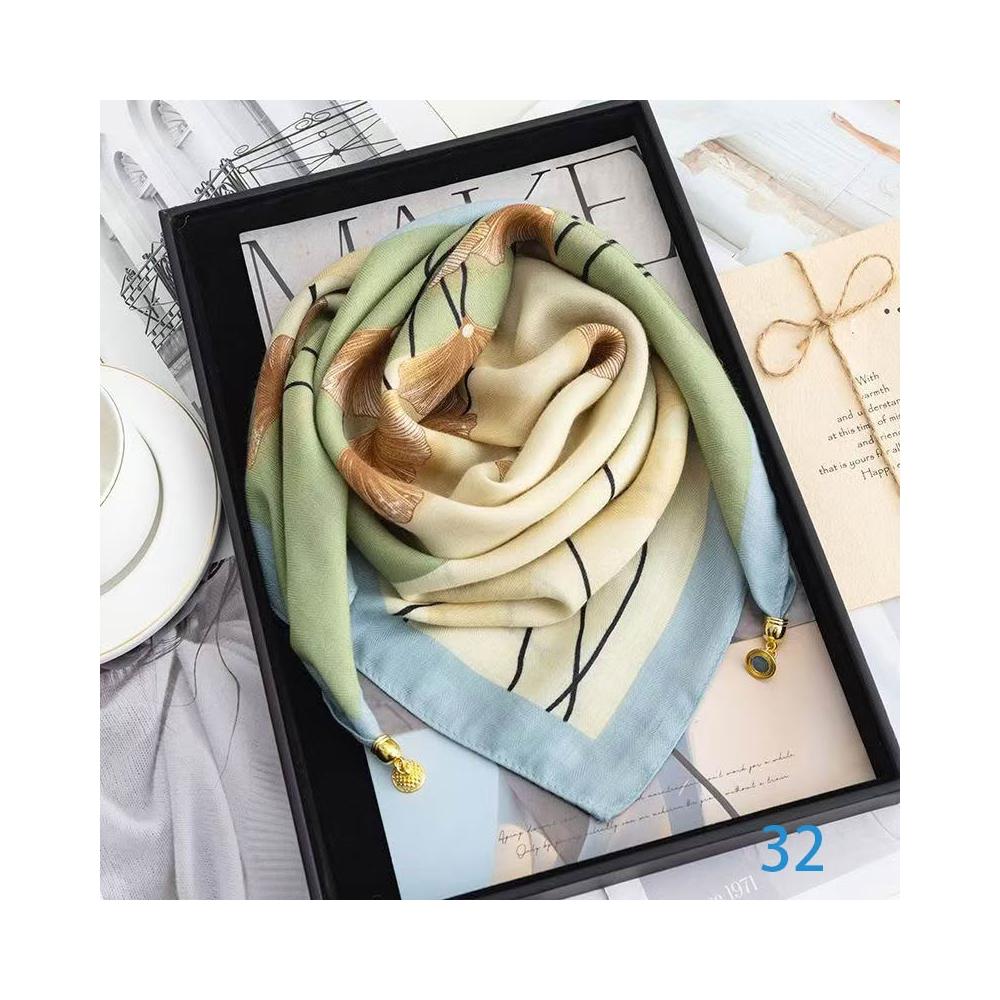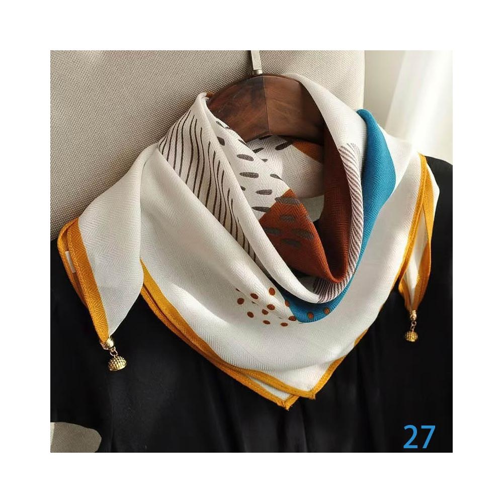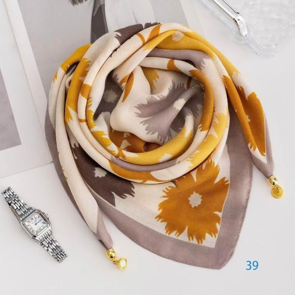 ANGLENELA 🔸新款保暖方巾 磁吸釦 三角絲巾 棉圍巾 脖圍巾 山茶花48種花色 二條即享優惠🔸25-48色