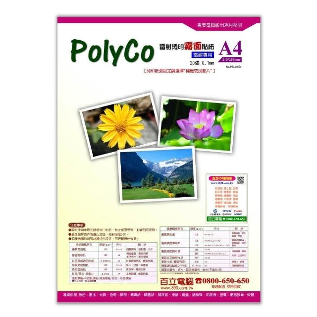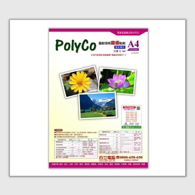 ★ PET材質 A4 霧面 透明貼紙 20張裝 雷射印表機專用 彩色雷射 防水 透明 霧面 貼紙 Polyco