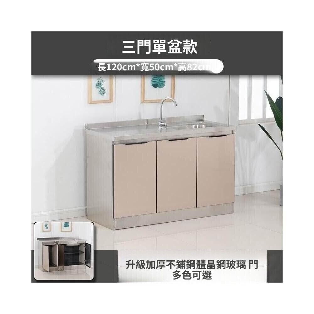 不銹鋼 櫥櫃 碗櫃 家用 水槽櫃 置物 簡易廚房 櫥櫃 灶台櫃 一體組裝經濟型 收納櫃
