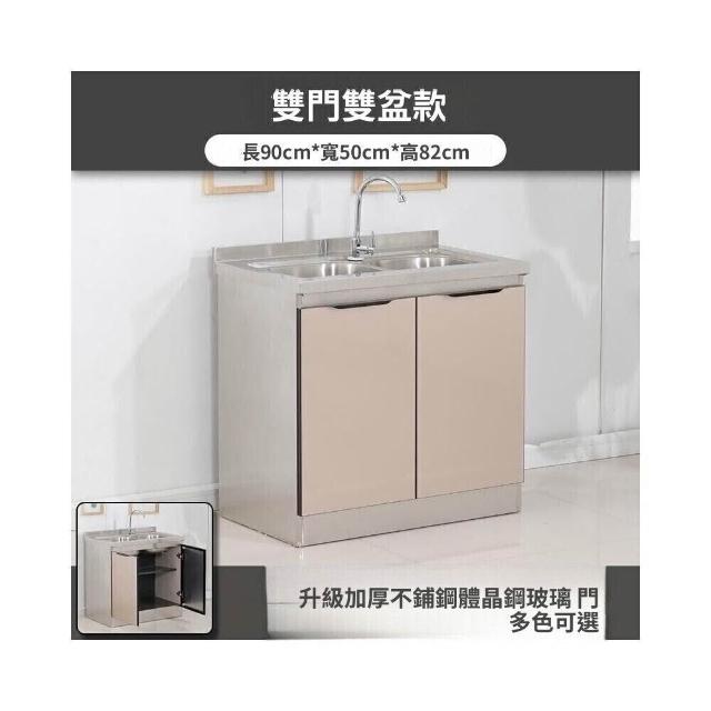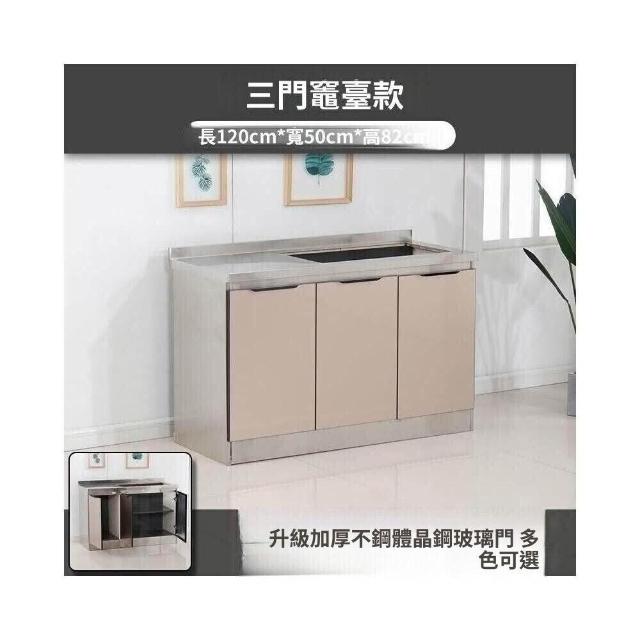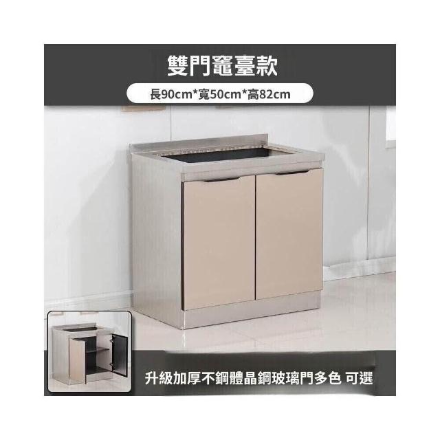 不銹鋼 櫥櫃 碗櫃 家用 水槽櫃 置物 簡易廚房 櫥櫃 灶台櫃 一體組裝經濟型 收納櫃