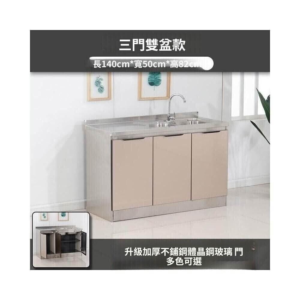 不銹鋼 櫥櫃 碗櫃 家用 水槽櫃 置物 簡易廚房 櫥櫃 灶台櫃 一體組裝經濟型 收納櫃