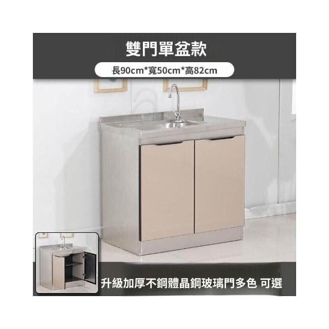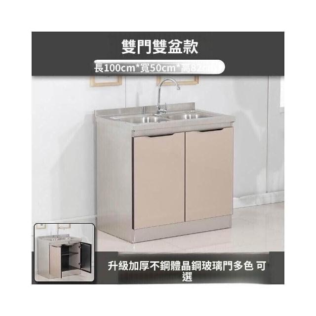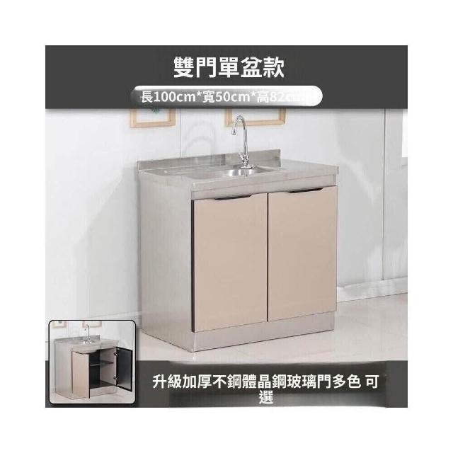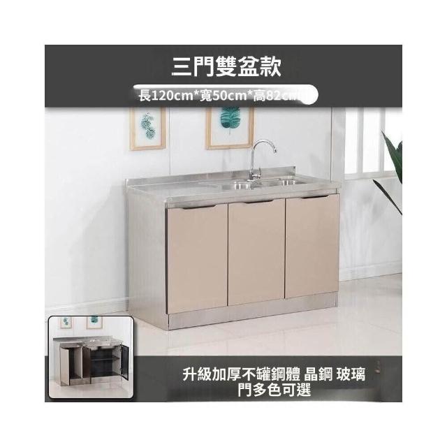 不銹鋼 櫥櫃 碗櫃 家用 水槽櫃 置物 簡易廚房 櫥櫃 灶台櫃 一體組裝經濟型 收納櫃