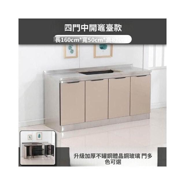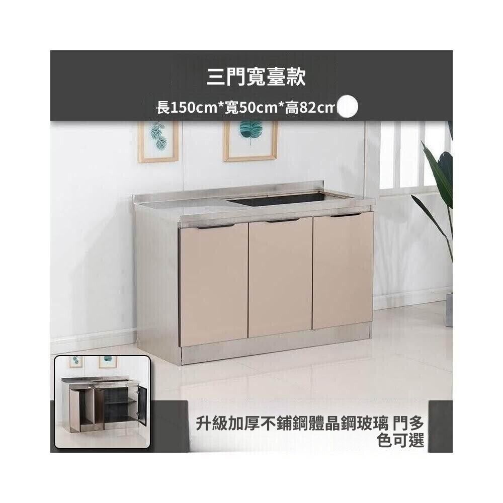 不銹鋼 櫥櫃 碗櫃 家用 水槽櫃 置物 簡易廚房 櫥櫃 灶台櫃 一體組裝經濟型 收納櫃