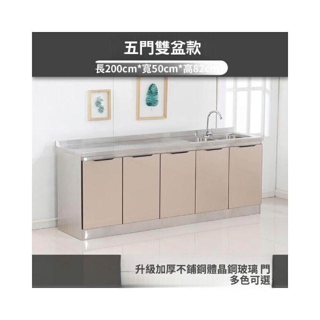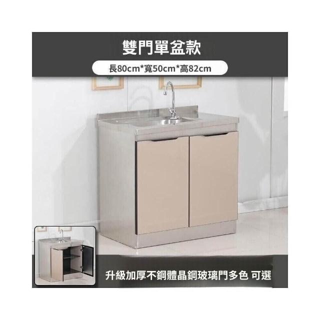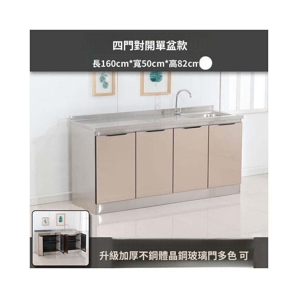 不銹鋼 櫥櫃 碗櫃 家用 水槽櫃 置物 簡易廚房 櫥櫃 灶台櫃 一體組裝經濟型 收納櫃