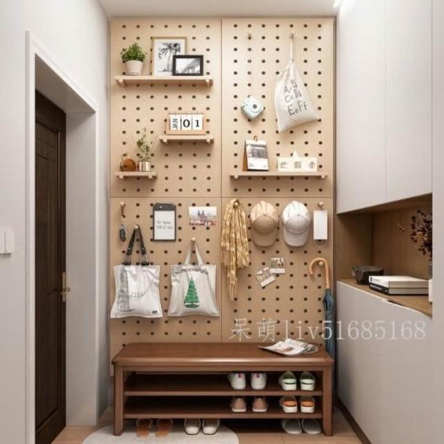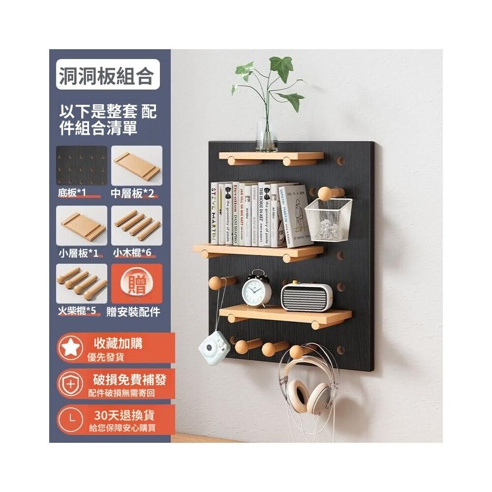 洞洞板實木 定制牆上置物架子 木質牆壁掛牆書架隔板 收納架掛板牆面