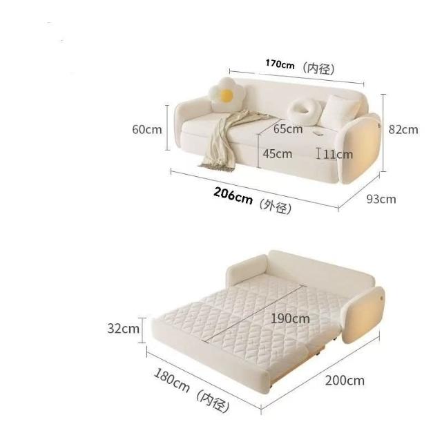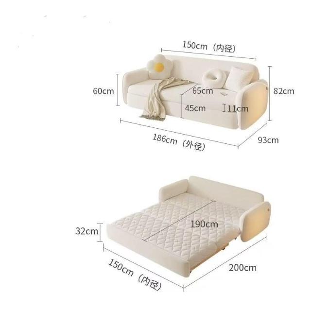 羊羔絨現代簡約網紅沙發床小戶型客廳家用三折疊實木多功能沙發床沙發 沙發床 臥室沙發小戶型公寓出租房雙人小沙發