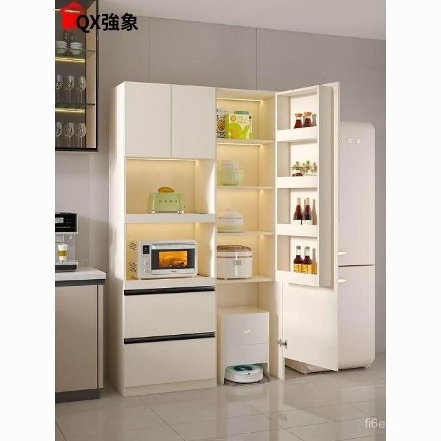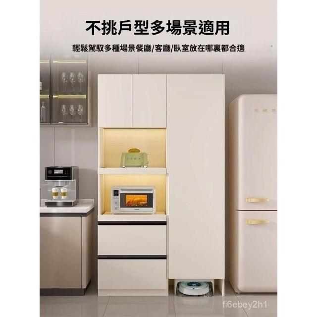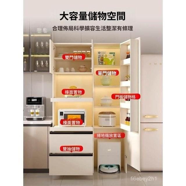奶油風餐邊櫃靠墻一體廚房收納高櫃電器置物櫃多功能儲物定製G326 吸塵器收納櫃 掃地機器人置物櫃