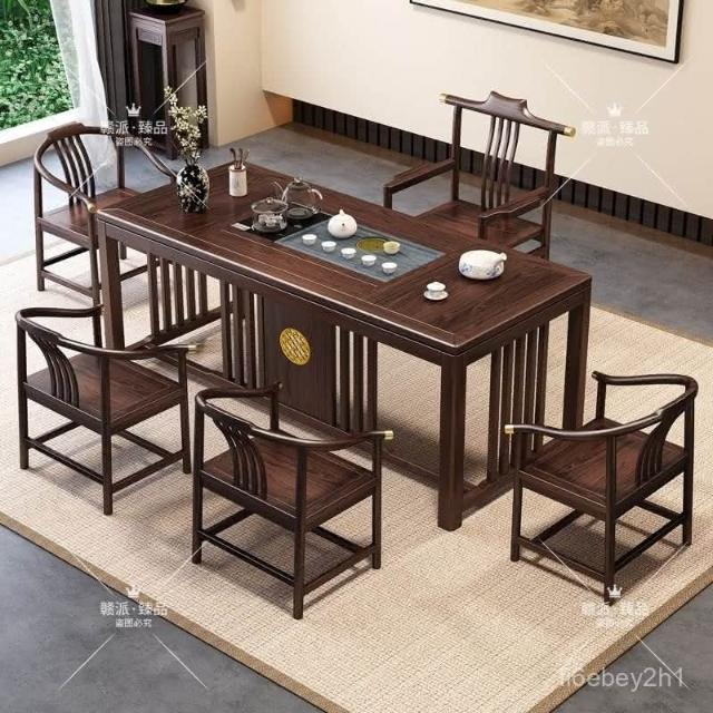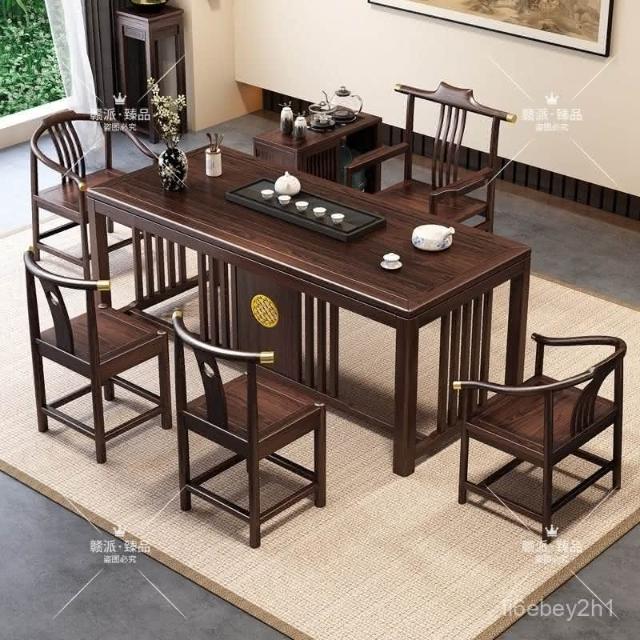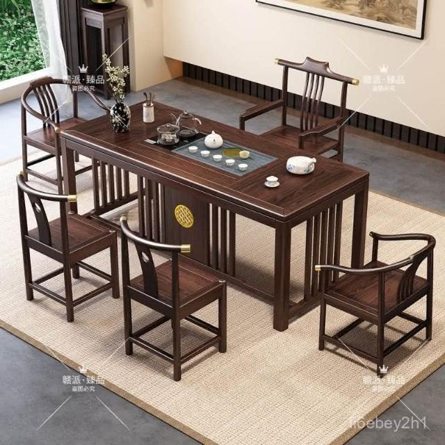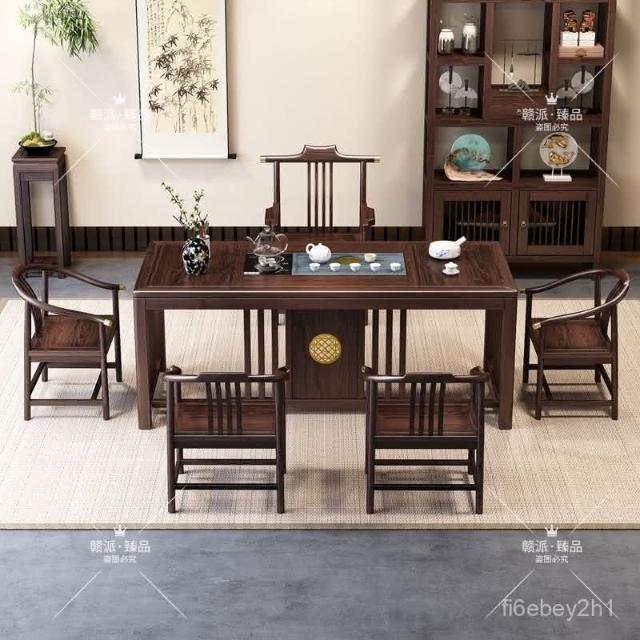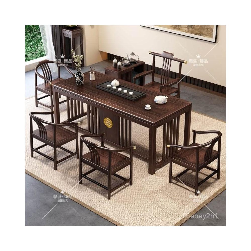 特價/熱賣 新中式烏金木全實木茶桌椅組閤辦公室茶幾傢用茶臺套裝一體泡茶桌 茶桌 茶幾 茶臺 茶桌椅 泡茶桌