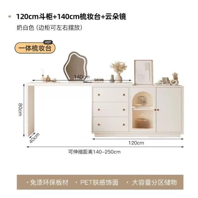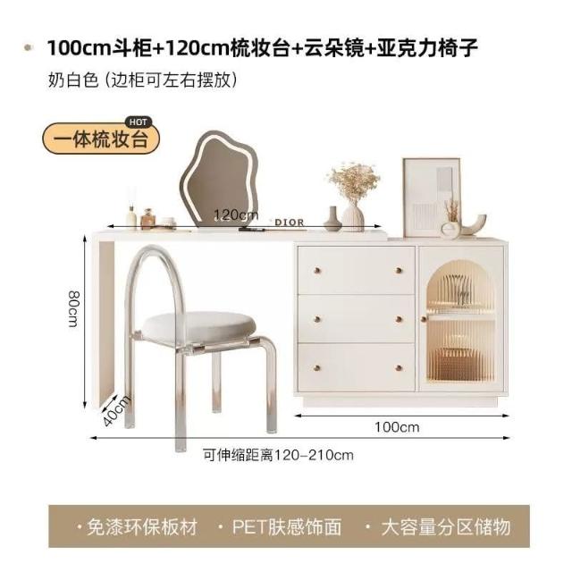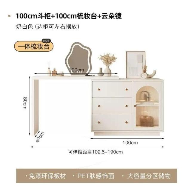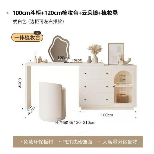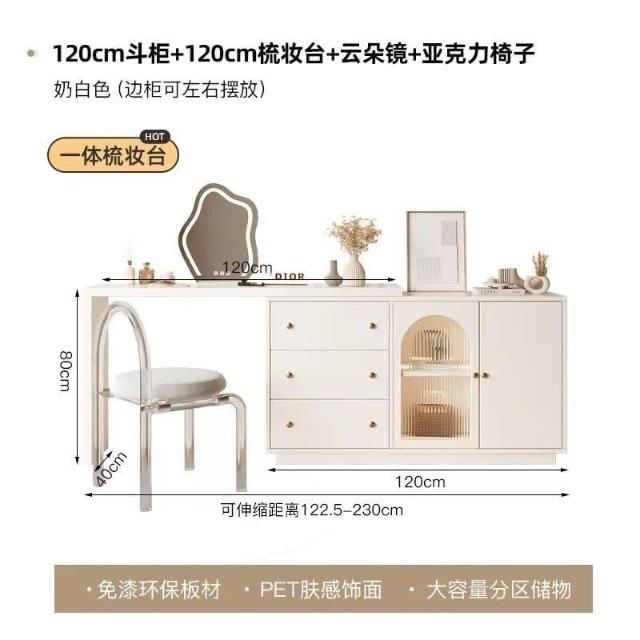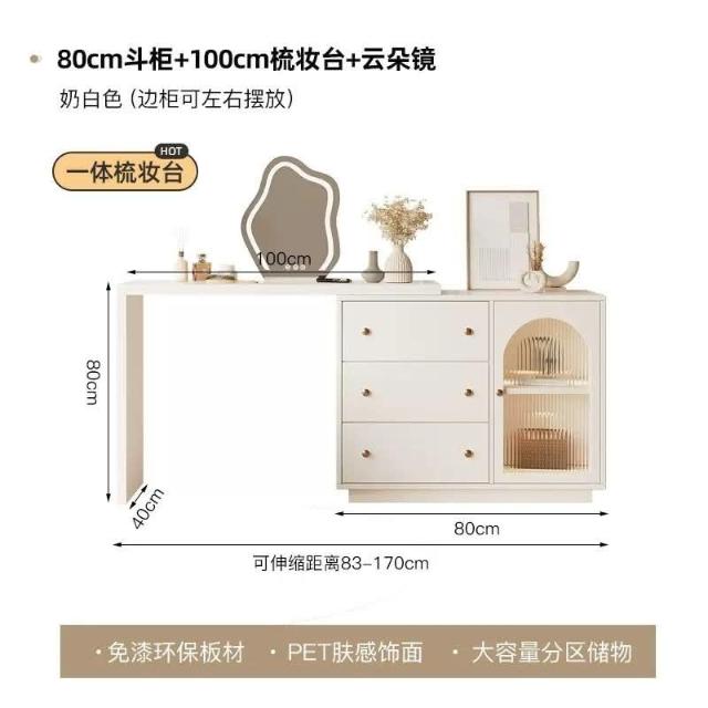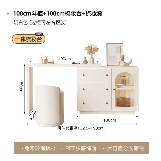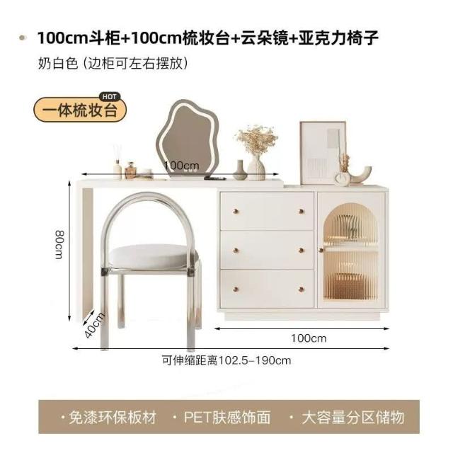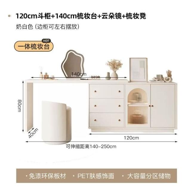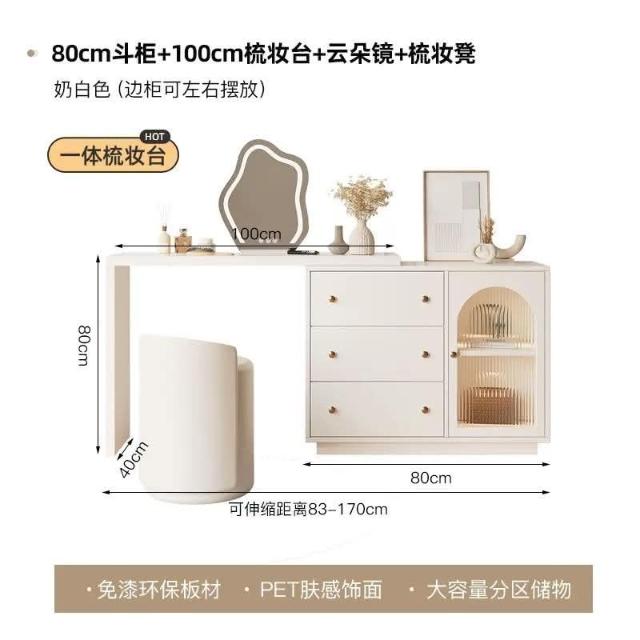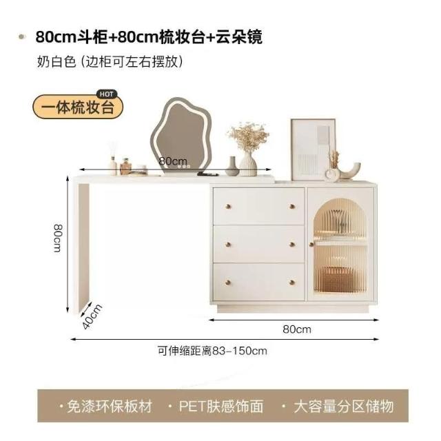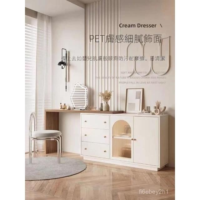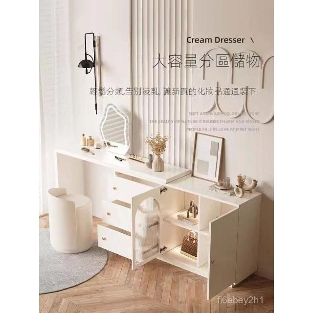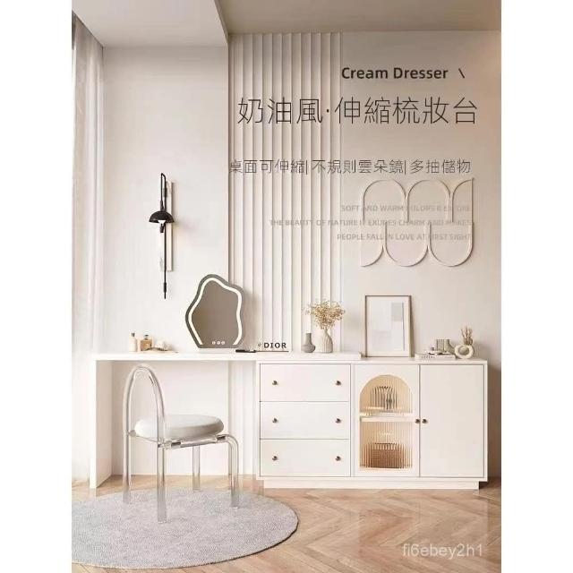 熱銷/最低價 梳妝臺 臥室 現代 簡約 網紅 奶油風 2024新款 鬥櫃 臺體式 化妝桌 可伸縮化妝臺