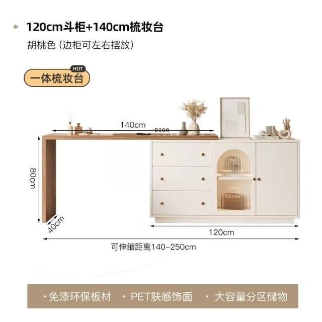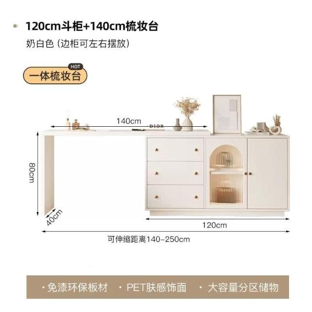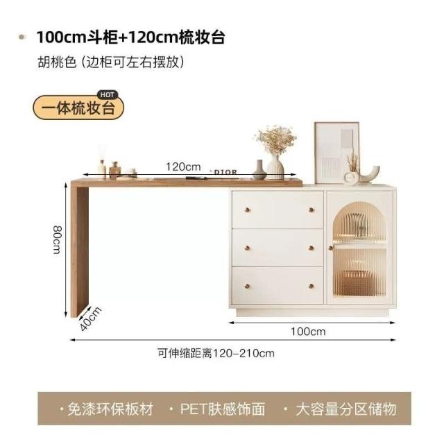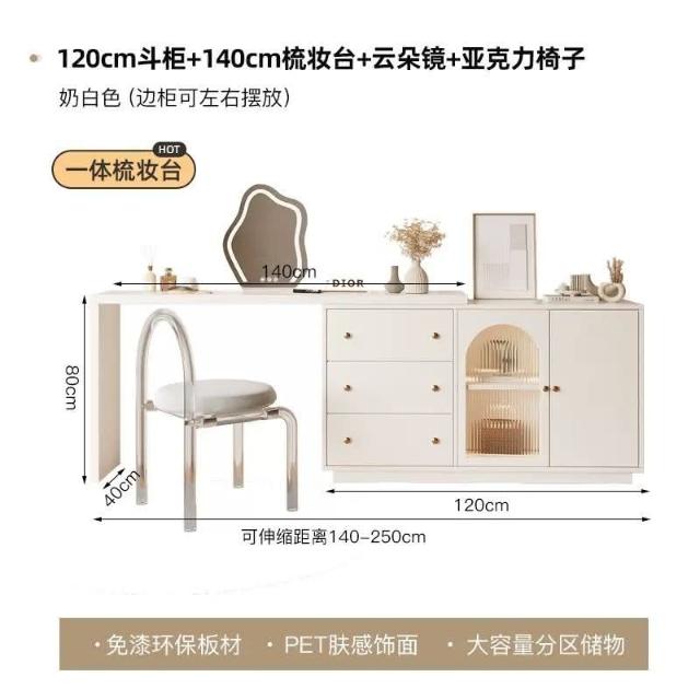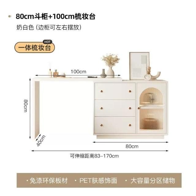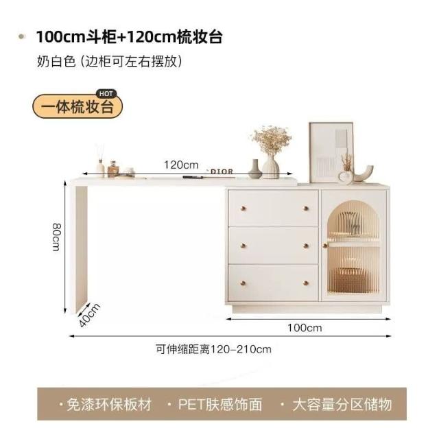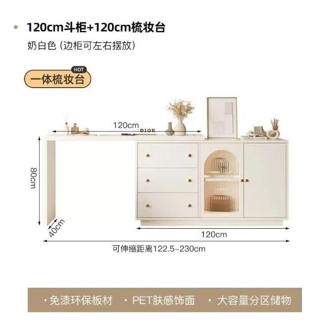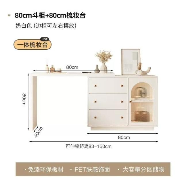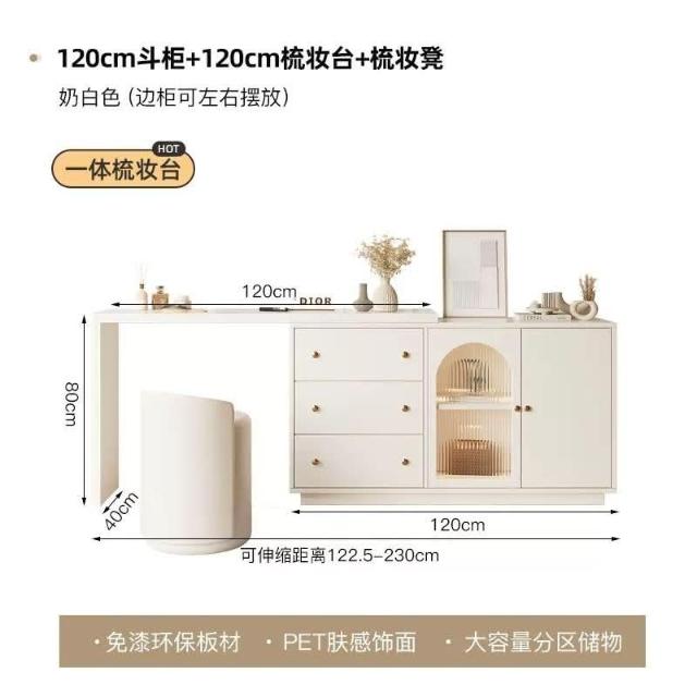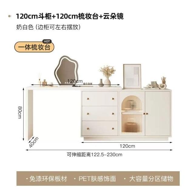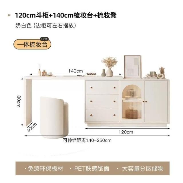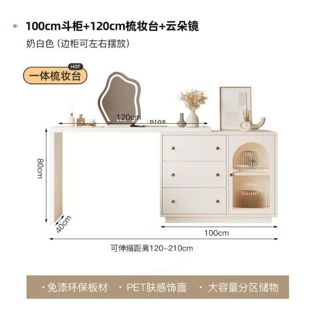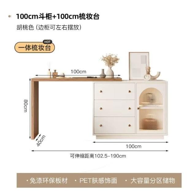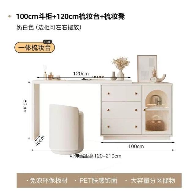 熱銷/最低價 梳妝臺 臥室 現代 簡約 網紅 奶油風 2024新款 鬥櫃 臺體式 化妝桌 可伸縮化妝臺
