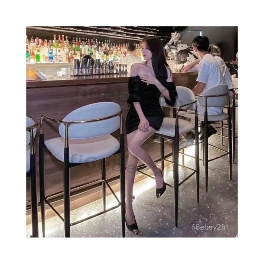 可開發票/熱銷 高端酒吧酒館吧臺椅咖啡廳餐廳清吧傢用輕奢大靠背有扶手高腳椅子 吧臺椅 高腳椅 靠背椅 餐椅 化妝椅