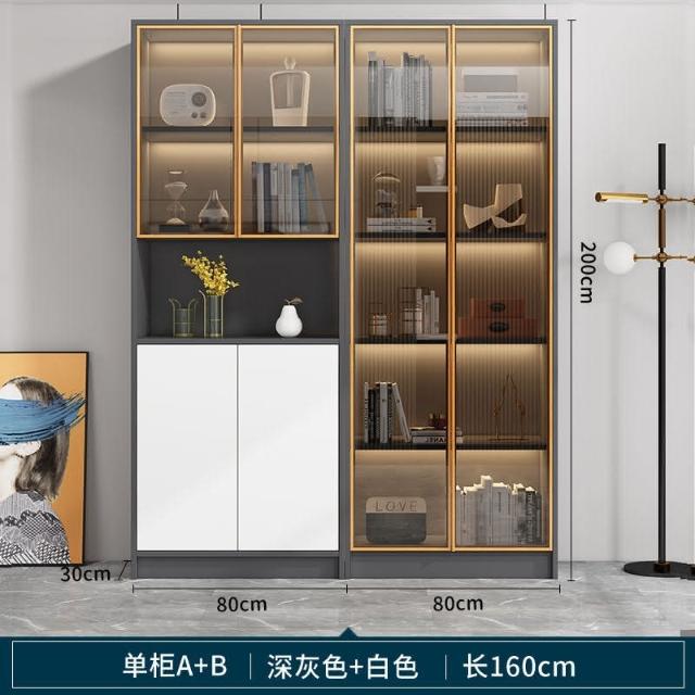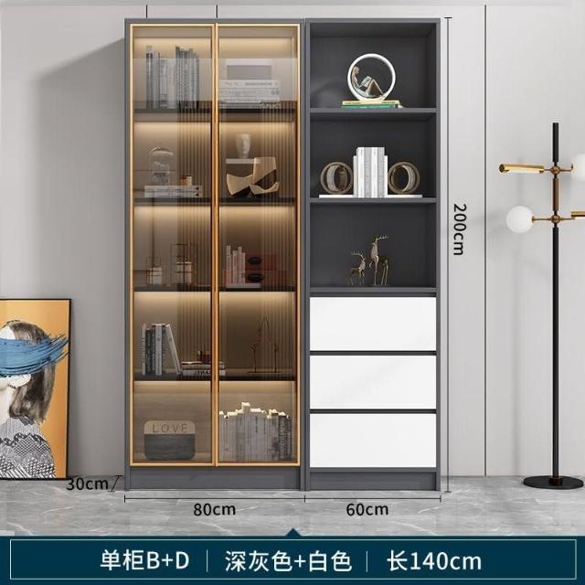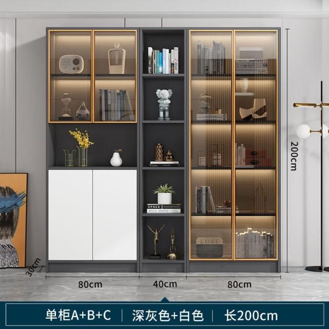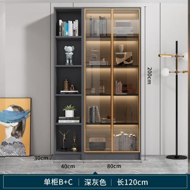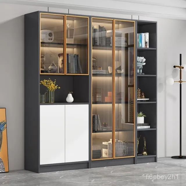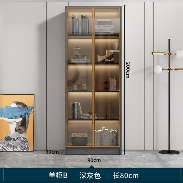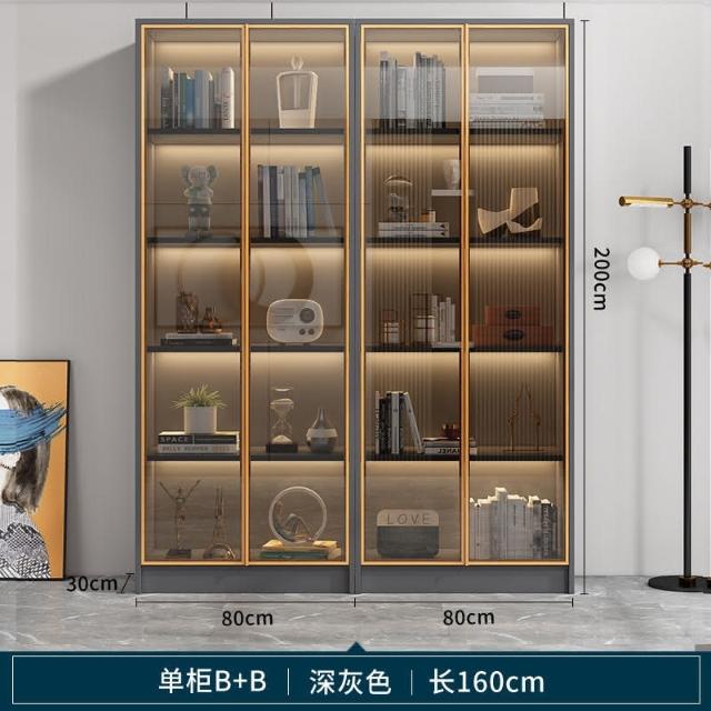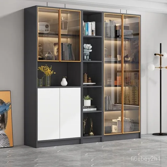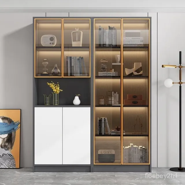 代客組裝 置物櫃 玻璃展示櫃 櫃子 蕭瑟玻璃門書櫃客廳落地靠墻多功能書櫥現代簡約收納櫃手辦展示櫃 儲物櫃 展示架