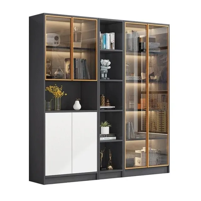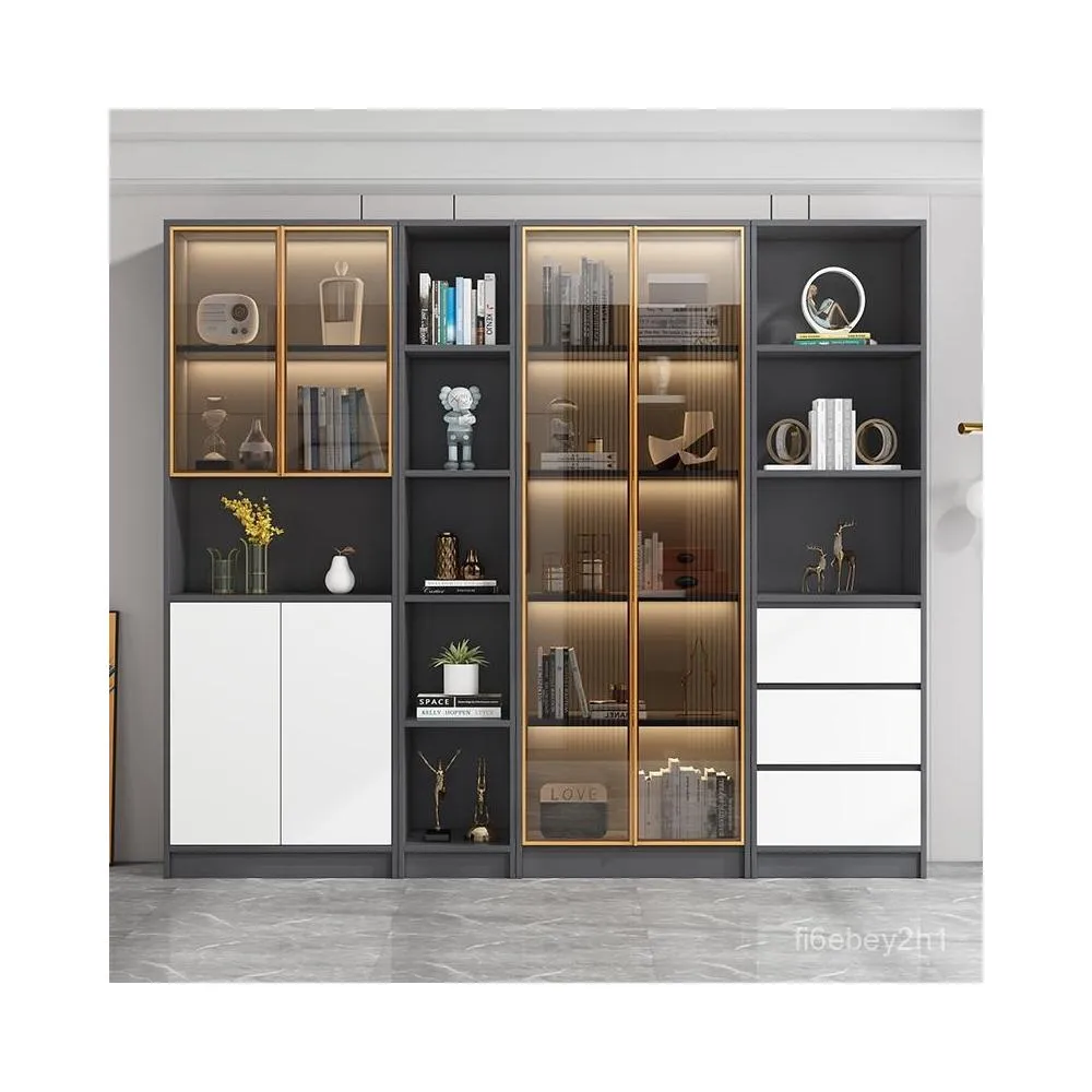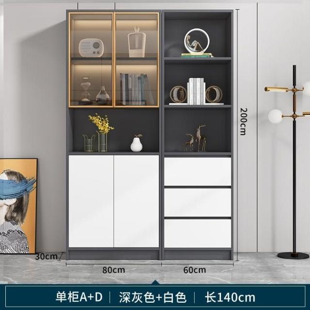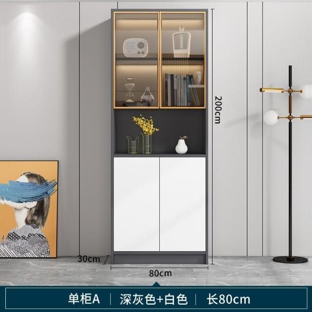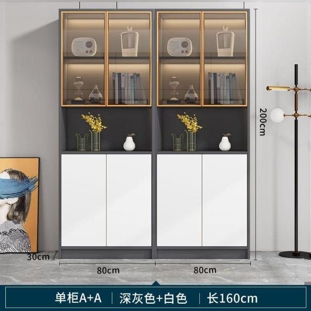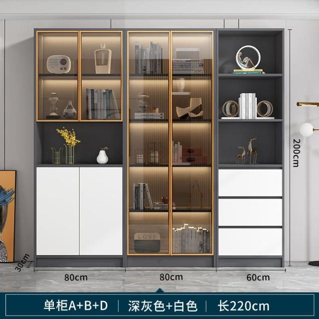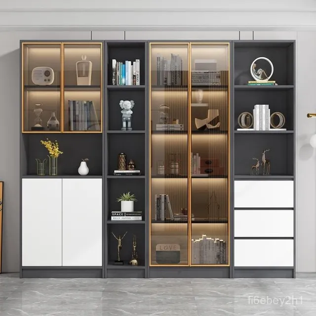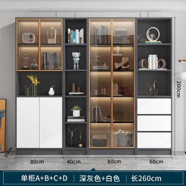 代客組裝 置物櫃 玻璃展示櫃 櫃子 蕭瑟玻璃門書櫃客廳落地靠墻多功能書櫥現代簡約收納櫃手辦展示櫃 儲物櫃 展示架