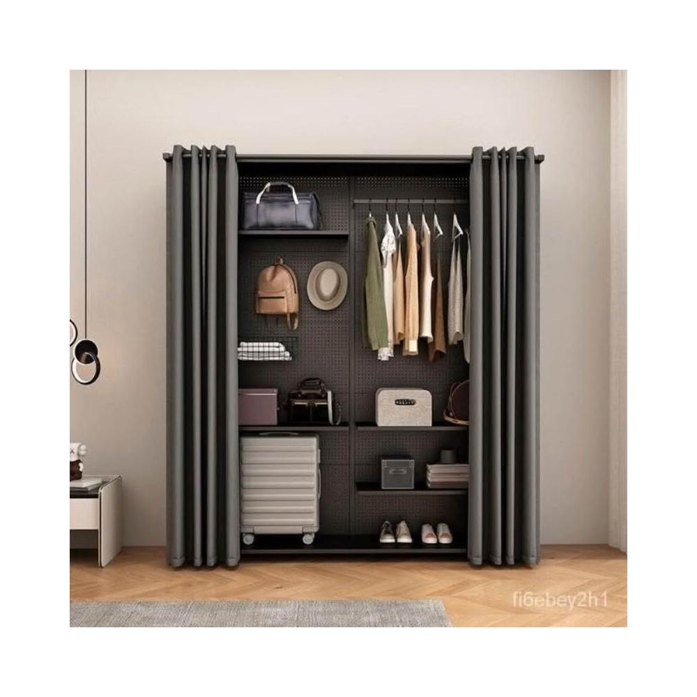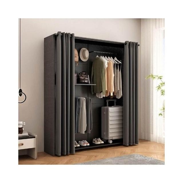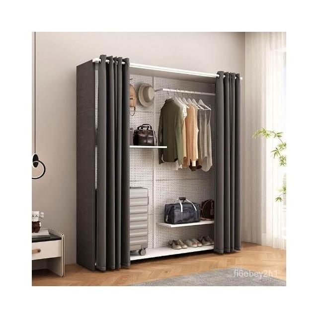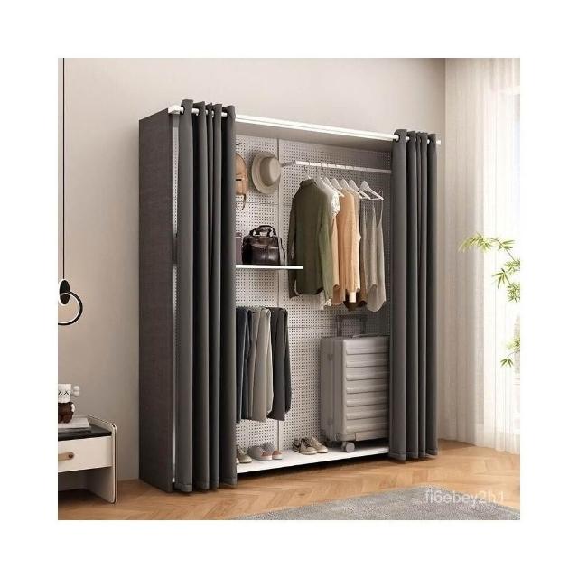 開放式衣櫃 防塵簾洞洞衣櫃 傢用臥室金屬開放式防塵簾五金鐵藝少女衣帽間 工業風衣櫃 金屬衣櫥 組閤衣櫃