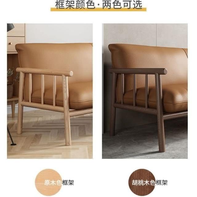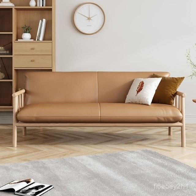 北歐日式實木皮沙發小戶型現代簡約客廳臥室三人雙人原木風小沙發 沙發椅 躺椅 客廳沙發