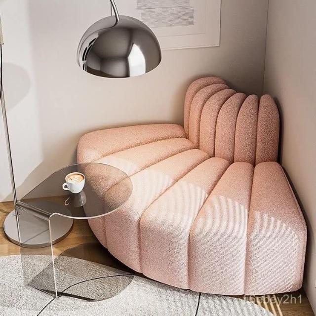 圓弧意式沙發 懶人沙發 法式奶油風小戶型臥室角落客廳墻角模塊沙發 拐角方塊傢居 宅寂風沙發