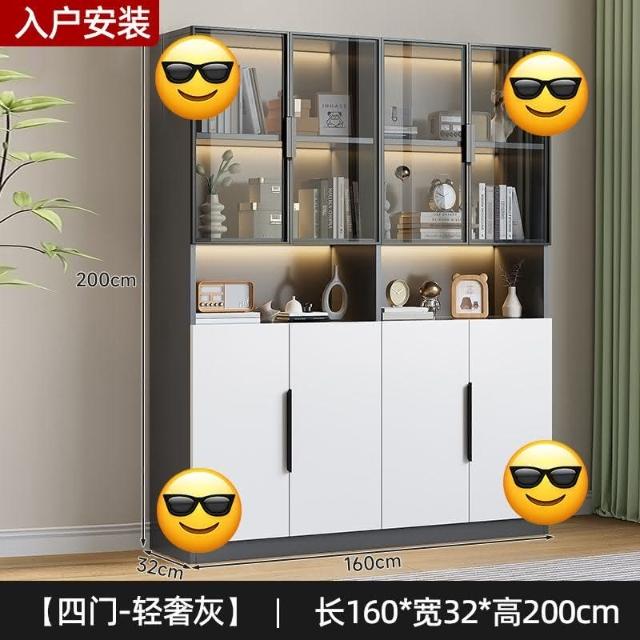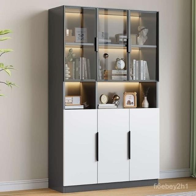 儲物櫃 展示架 置物櫃 玻璃展示櫃 櫃子 蕭瑟玻璃門書櫃客廳落地靠墻多功能書櫥現代簡約收納櫃手辦展示櫃