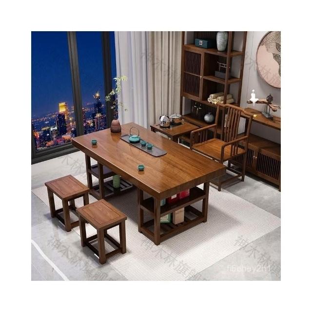 特價/熱賣 實木大闆茶桌椅組閤新中式長方形泡茶臺辦公室傢用陽臺茶桌一體 茶桌 茶幾 茶臺 茶桌椅 泡茶桌