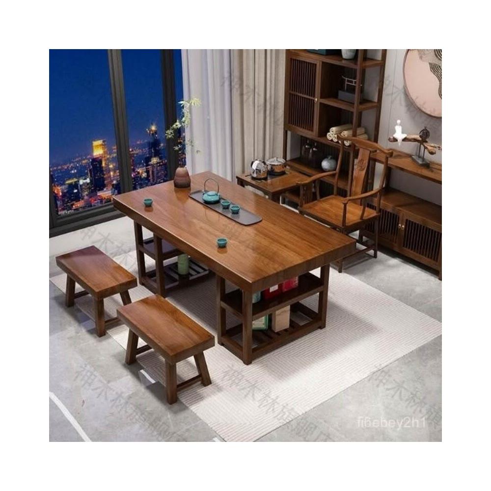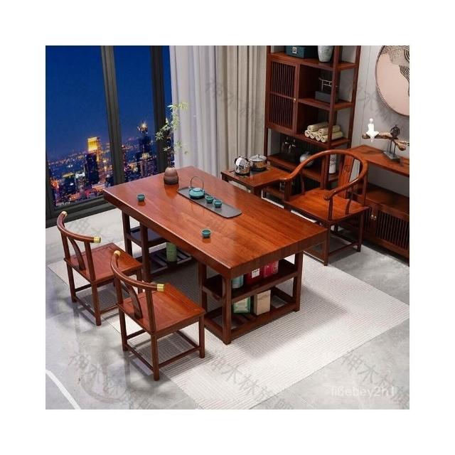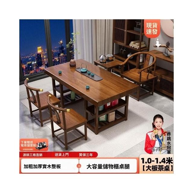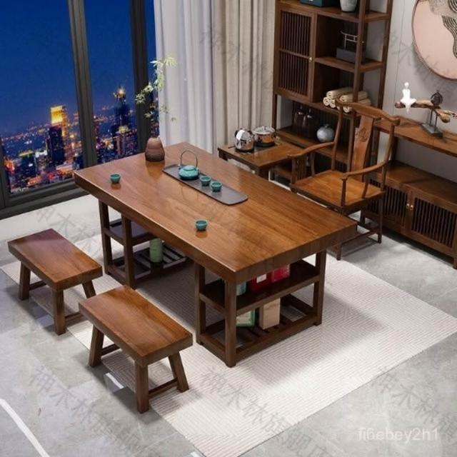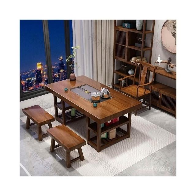 特價/熱賣 實木大闆茶桌椅組閤新中式長方形泡茶臺辦公室傢用陽臺茶桌一體 茶桌 茶幾 茶臺 茶桌椅 泡茶桌