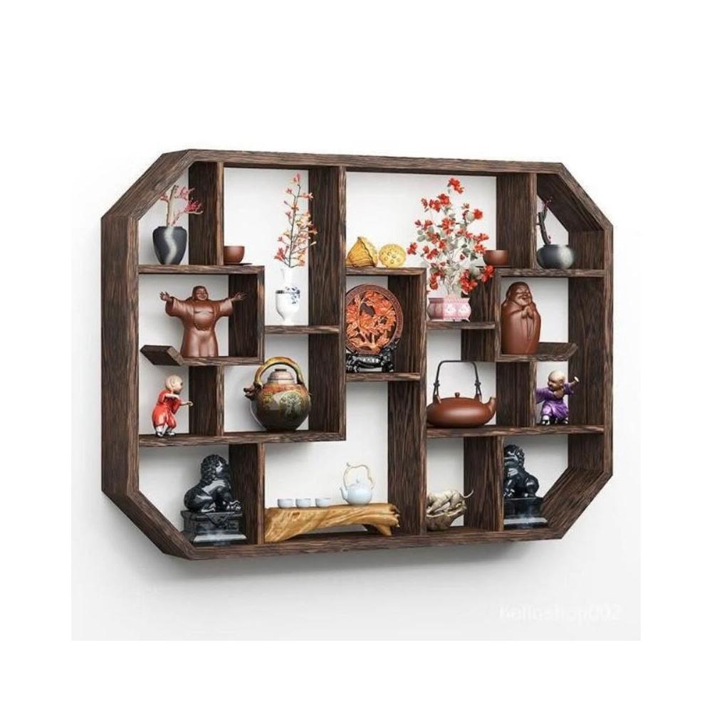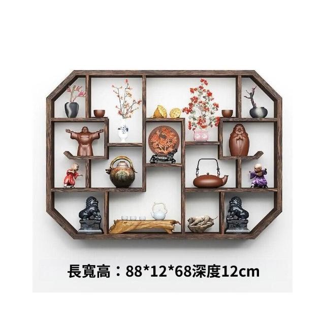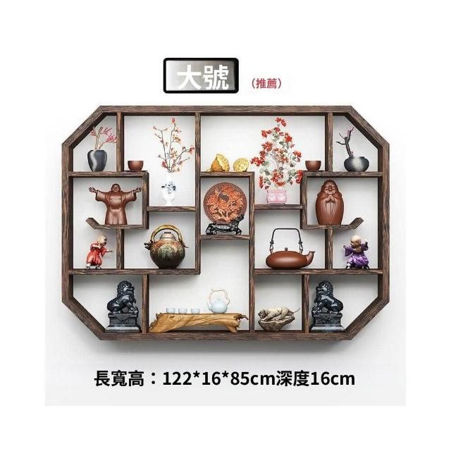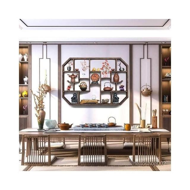 免運 博古架實木中式掛墻壁掛式置物架隔斷多寶閣格子架擺件簡約茶具架