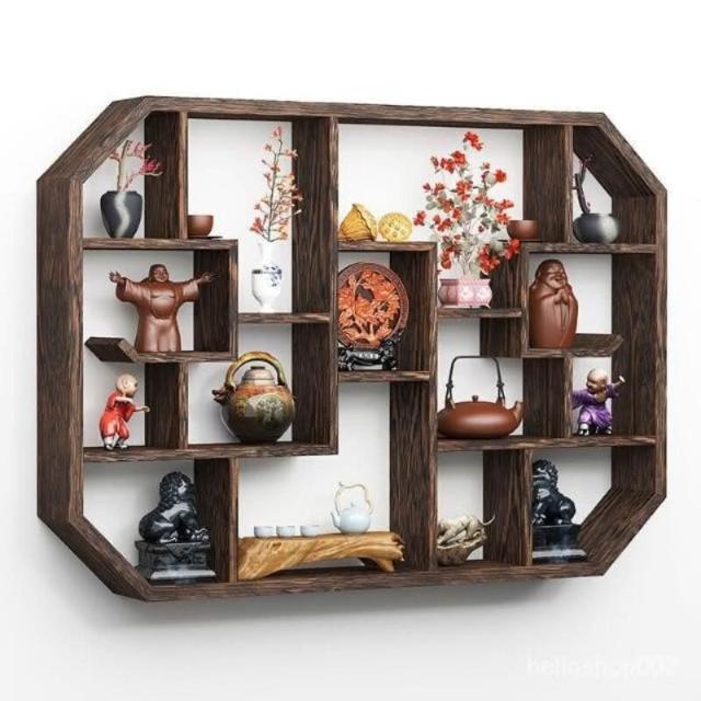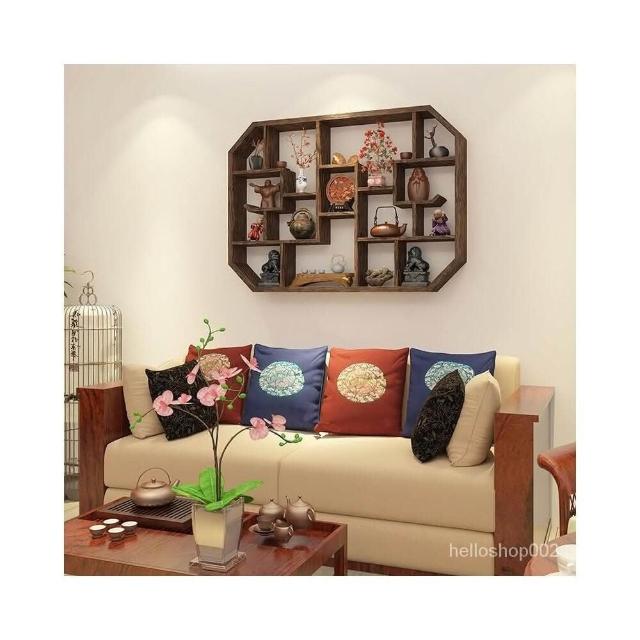 免運 博古架實木中式掛墻壁掛式置物架隔斷多寶閣格子架擺件簡約茶具架