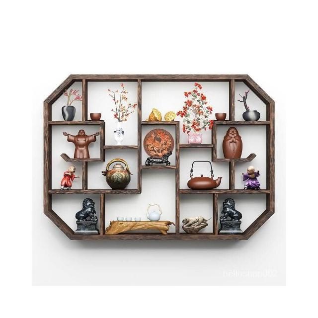 免運 博古架實木中式掛墻壁掛式置物架隔斷多寶閣格子架擺件簡約茶具架