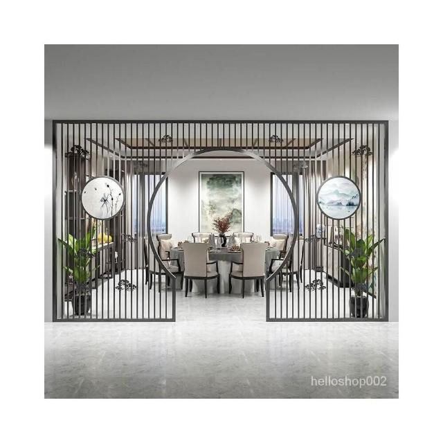 可開發票 免運 簡約新中式茶室鐵藝月洞門餐飲月亮門辦公室隔斷客廳玄關屏風拱門