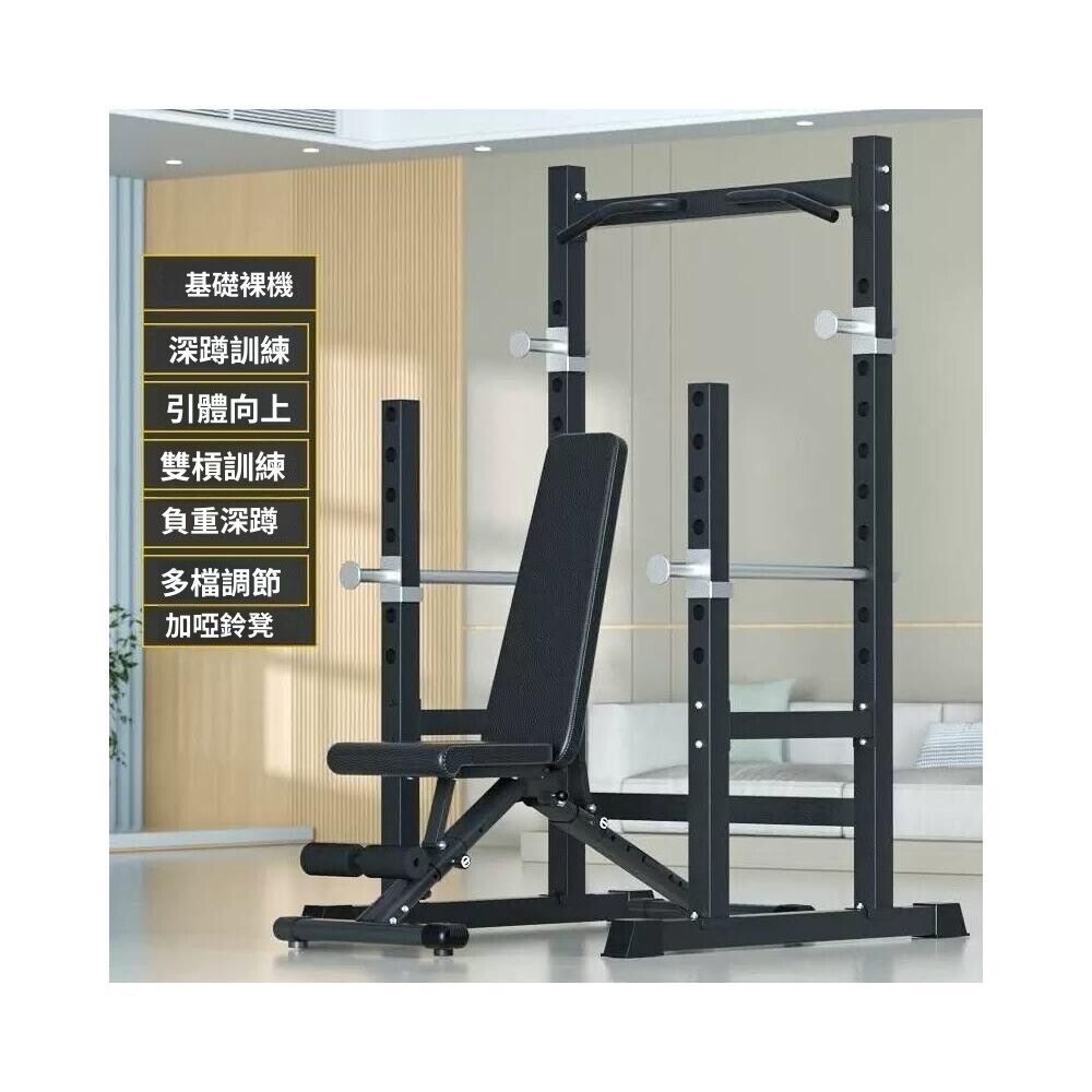 廠傢直銷 免運 多功能半框深蹲架傢用多功能臥推架槓鈴架龍門架健身器材組閤套裝