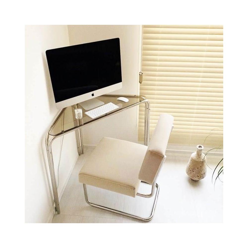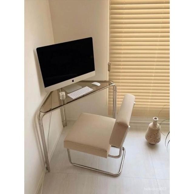 可開發票 韓國ins爆紅款不鏽鋼三角玻璃邊桌轉角牆角桌書桌電腦桌