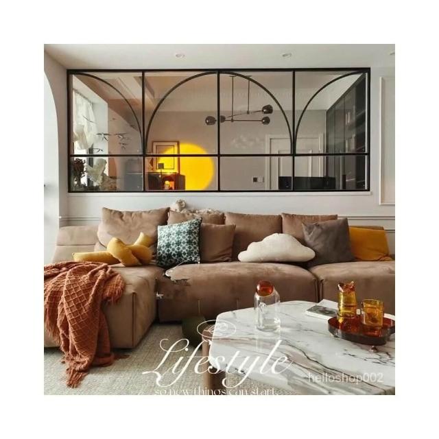複古鐵藝假窗戶屏風室內閣樓裝飾固定玄關長虹玻璃隔斷拱形窗定製