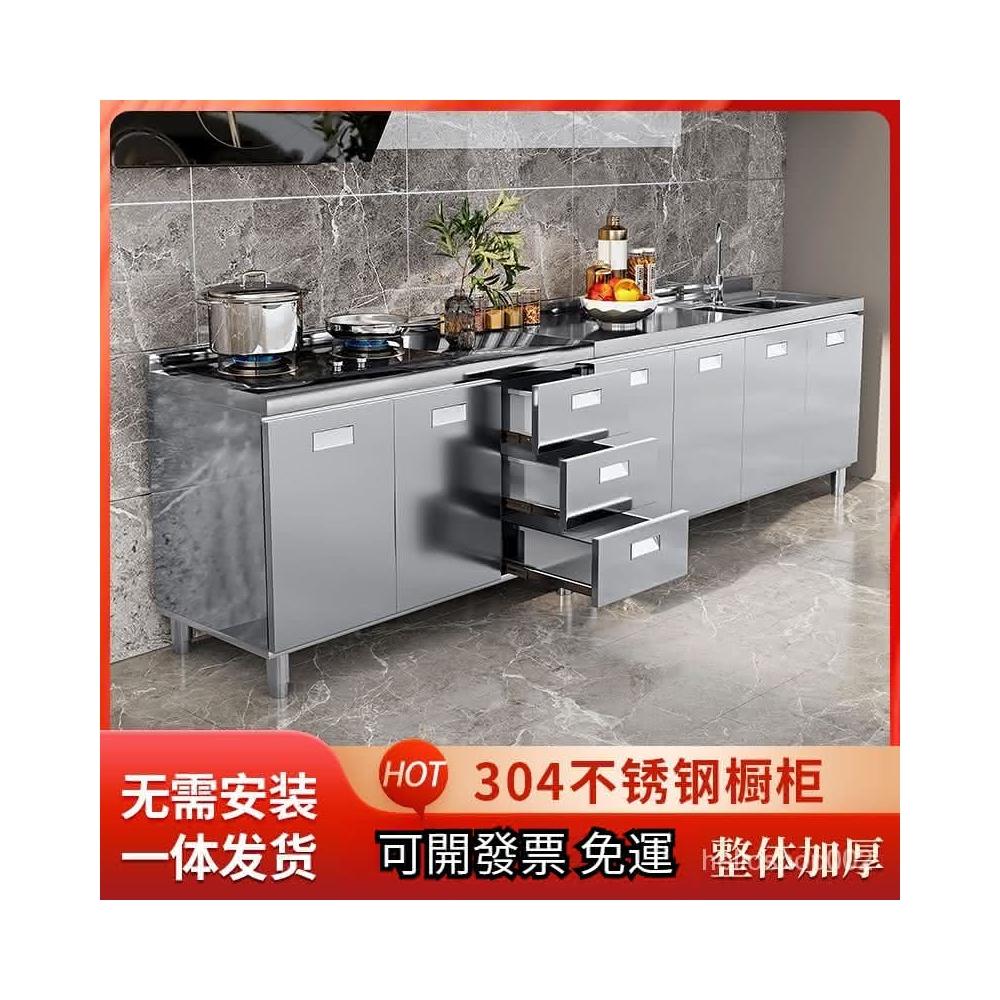 可開發票 304不銹鋼櫥櫃特厚全套廚房櫥櫃加厚租房用竈臺櫃整裝移動廚櫃子