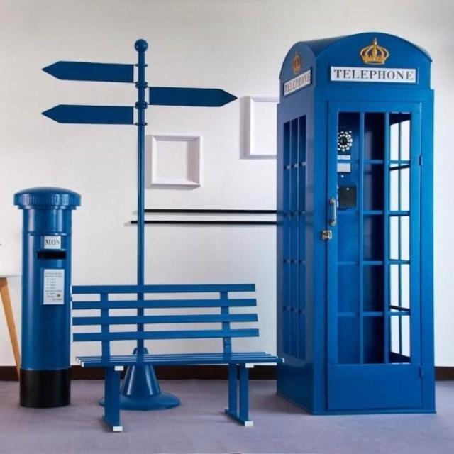 可開發票 免運 電話亭擺件複古鐵藝網紅道具模型郵筒路牌長椅商場酒吧大型裝飾品