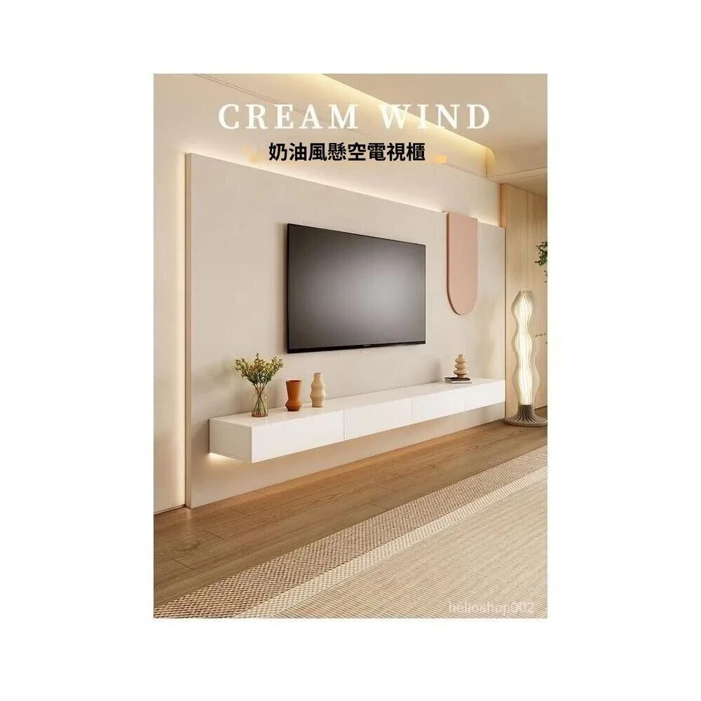 可開發票 免運 現代簡約懸空電視櫃懸掛式懸浮電視墻櫃小戶型客廳奶油風組閤茶幾