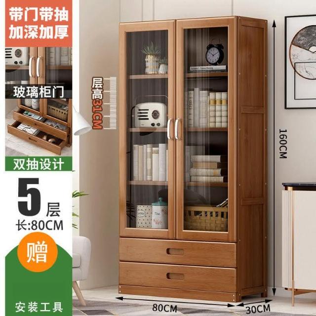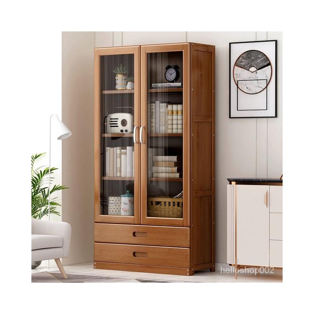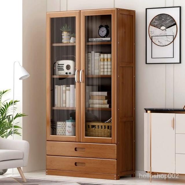 可開發票 書架桌麵收納置物架帶門玻璃透明書櫃簡易多層落地省空間儲物櫃子 置物櫃 展示架 櫥櫃 收納櫃