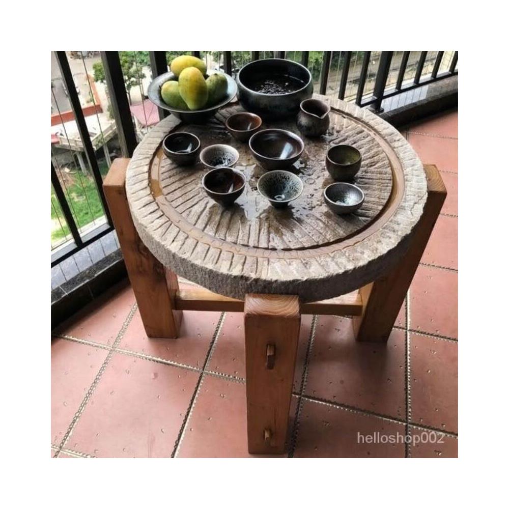 可開發票 工廠直銷 石磨茶盤茶臺桌子老磨盤舊石器茶託茶具木架磨片石桌石凳組閤擺件