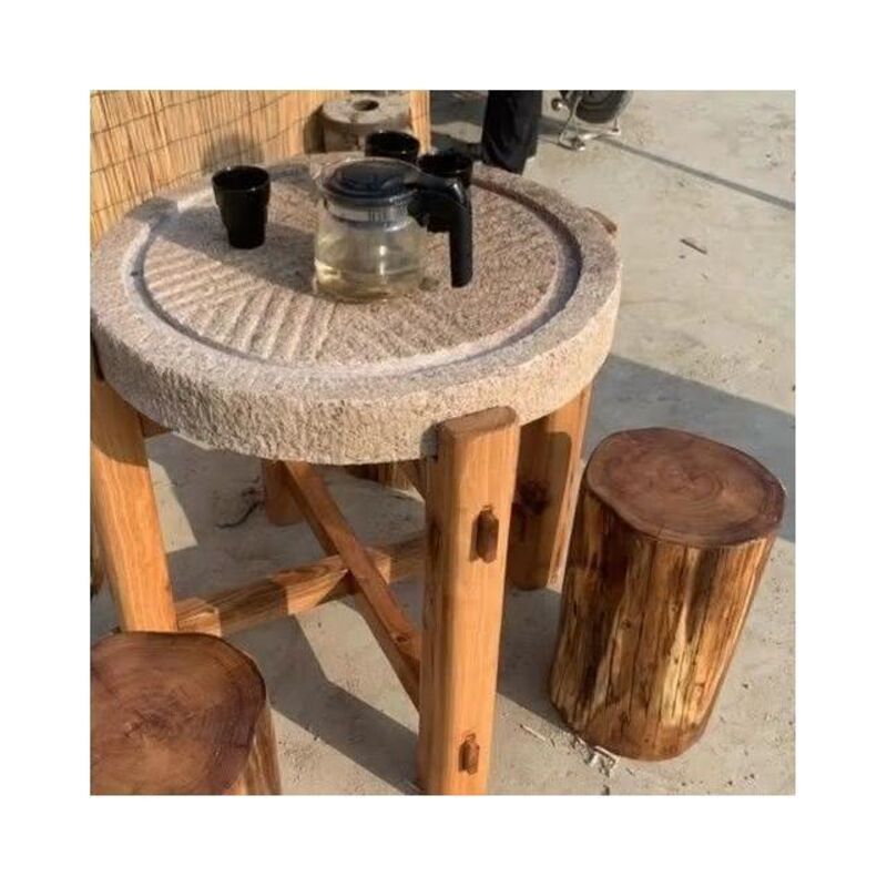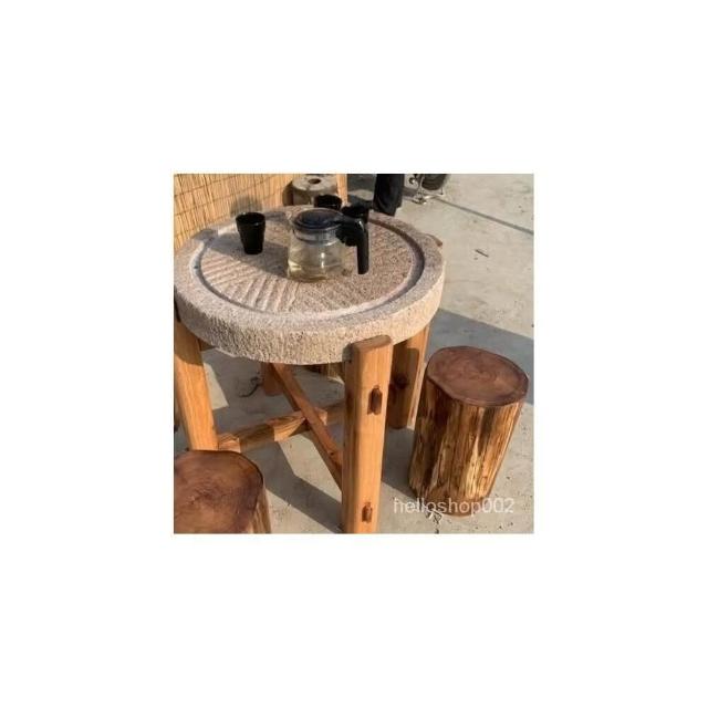 可開發票 工廠直銷 石磨茶盤茶臺桌子老磨盤舊石器茶託茶具木架磨片石桌石凳組閤擺件