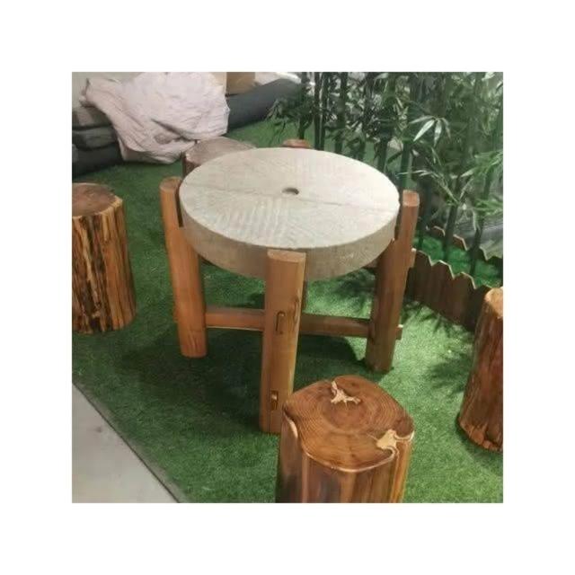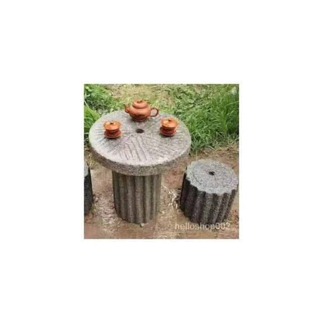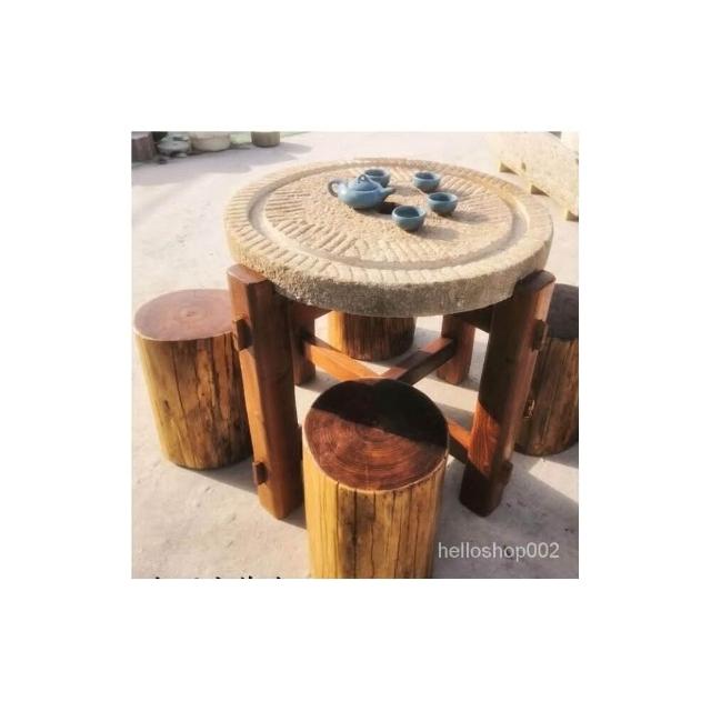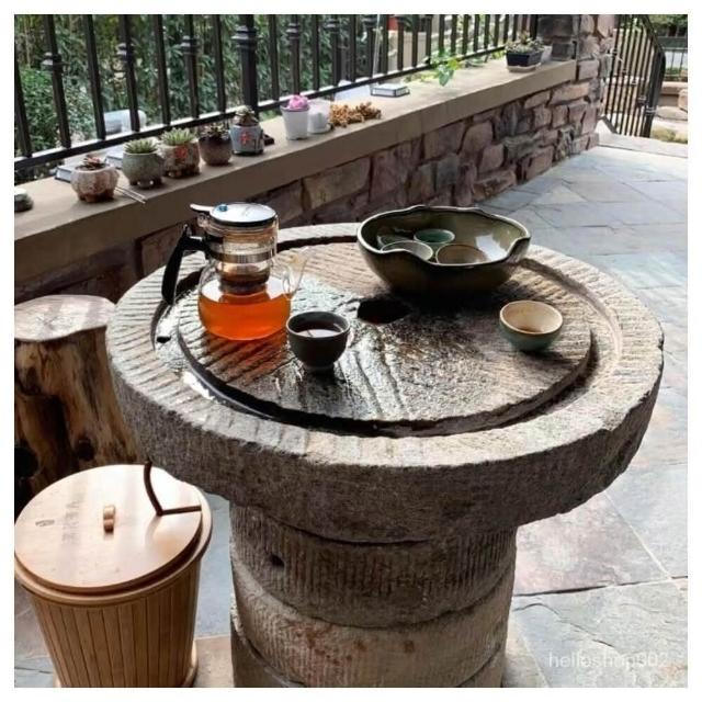 可開發票 工廠直銷 石磨茶盤茶臺桌子老磨盤舊石器茶託茶具木架磨片石桌石凳組閤擺件